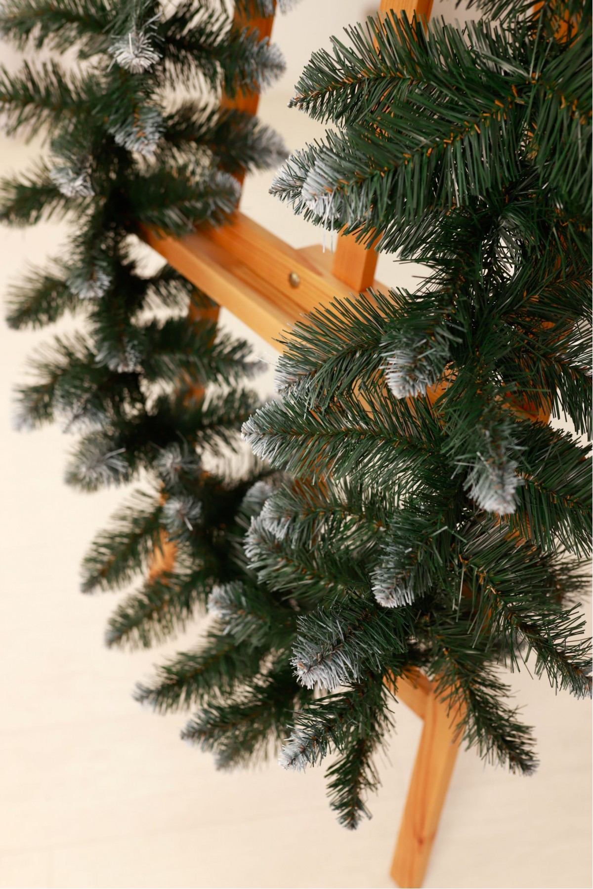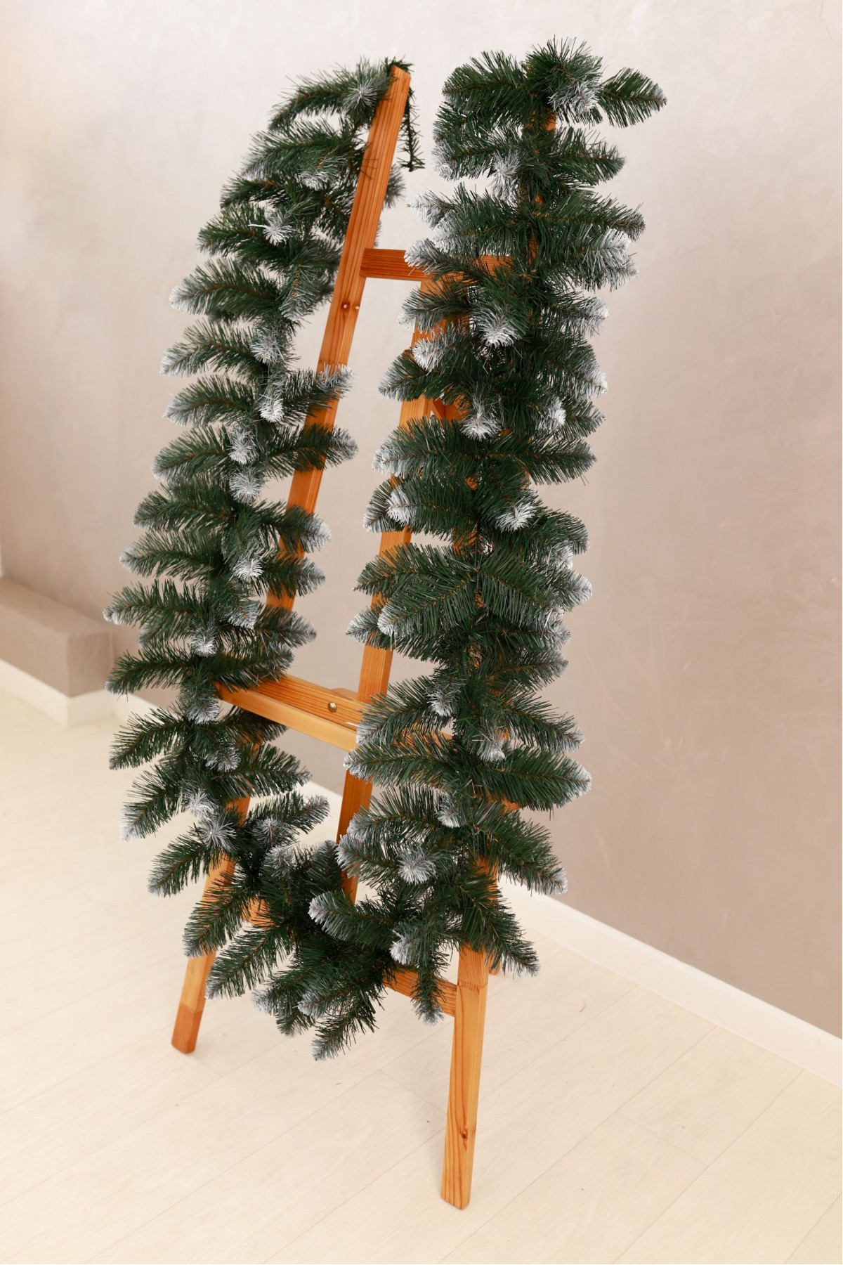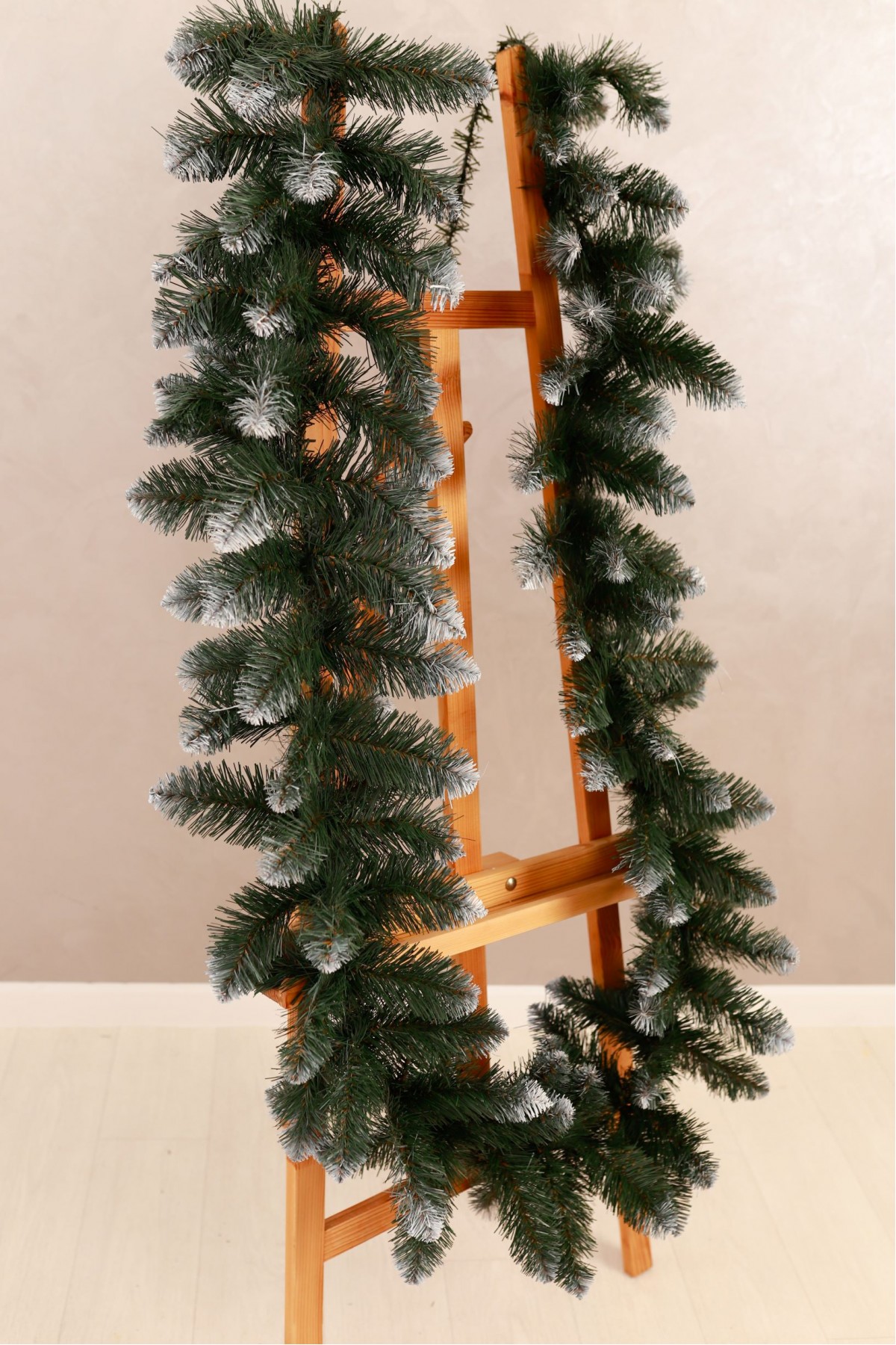 Різдвяна гірлянда "Королева" призначена для прикраси будинку, квартири, офісу, салону, кабінету, або іншого простору напередодні зимових свят. Гірлянду розміщують в отворі дверей, вікон, на каміні, перилах, а також інших поверхнях. Новорічний аксесуар виготовлений з якісної штучної хвої насиченого зеленого кольору та білими кінчиками. Гірлянда має довжину 3 метри, крона складається з 34 ярусів, а на кожному ярусі розташовані 4 гілочки.
