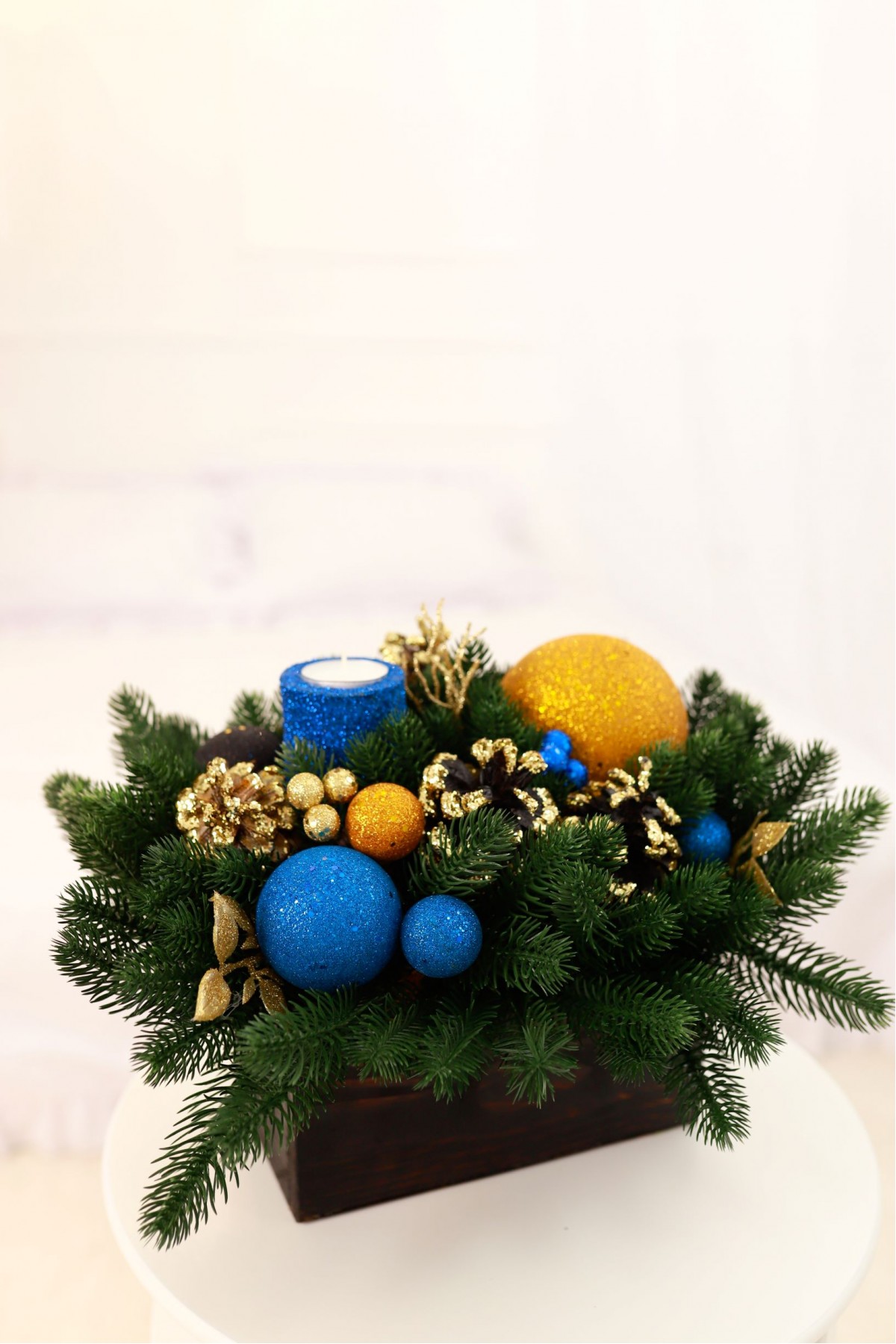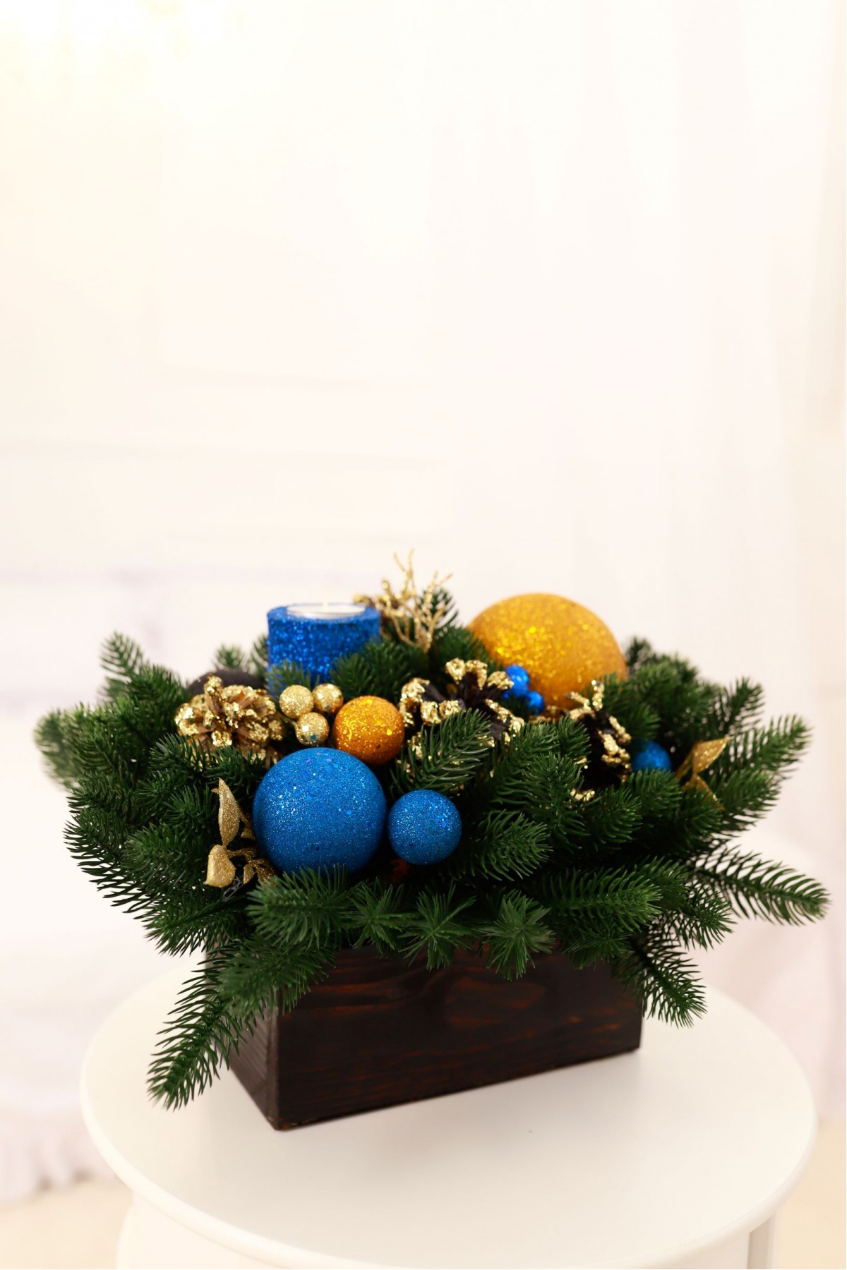 Новорічна композиція у дерев'яному кашпо "Candle"