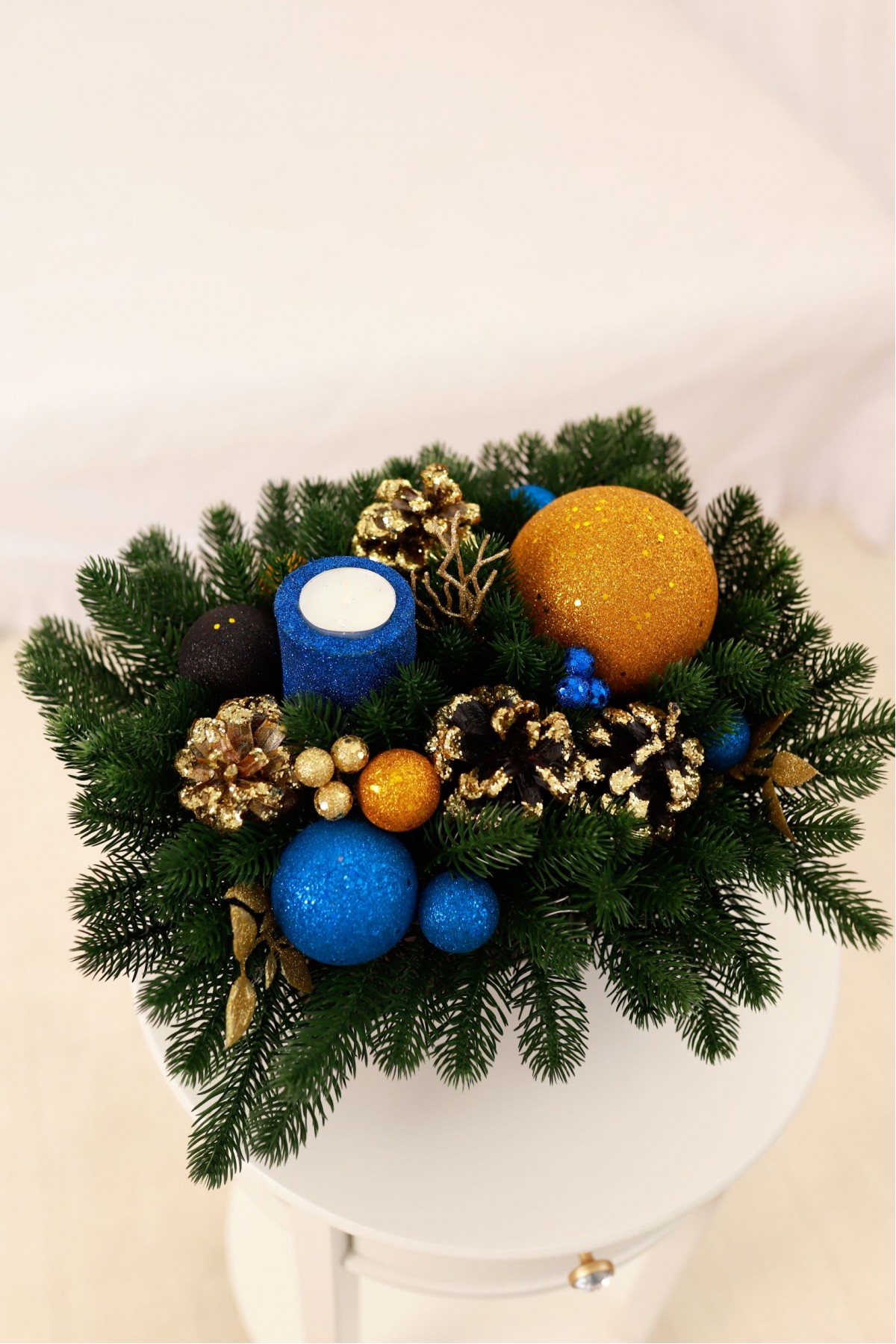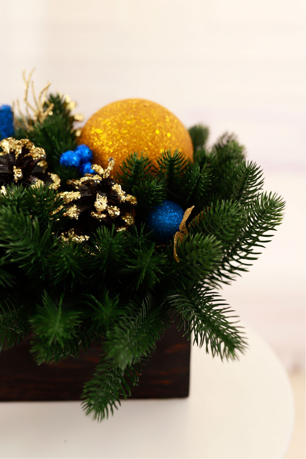 З давніх-давен ялинові гілки вважаються одним з найважливіших різдвяних символів. Вони символізують щасливе життя, достаток, сімейний добробут. Кожен елемент декору має сакральний зміст та впливає на процвітання весь наступний рік. Композиція з декорованої хвої в дерев'яному кашпо прикрасить будь-який простір, стане чудовим подарунком напередодні Святвечора, Нового Року.