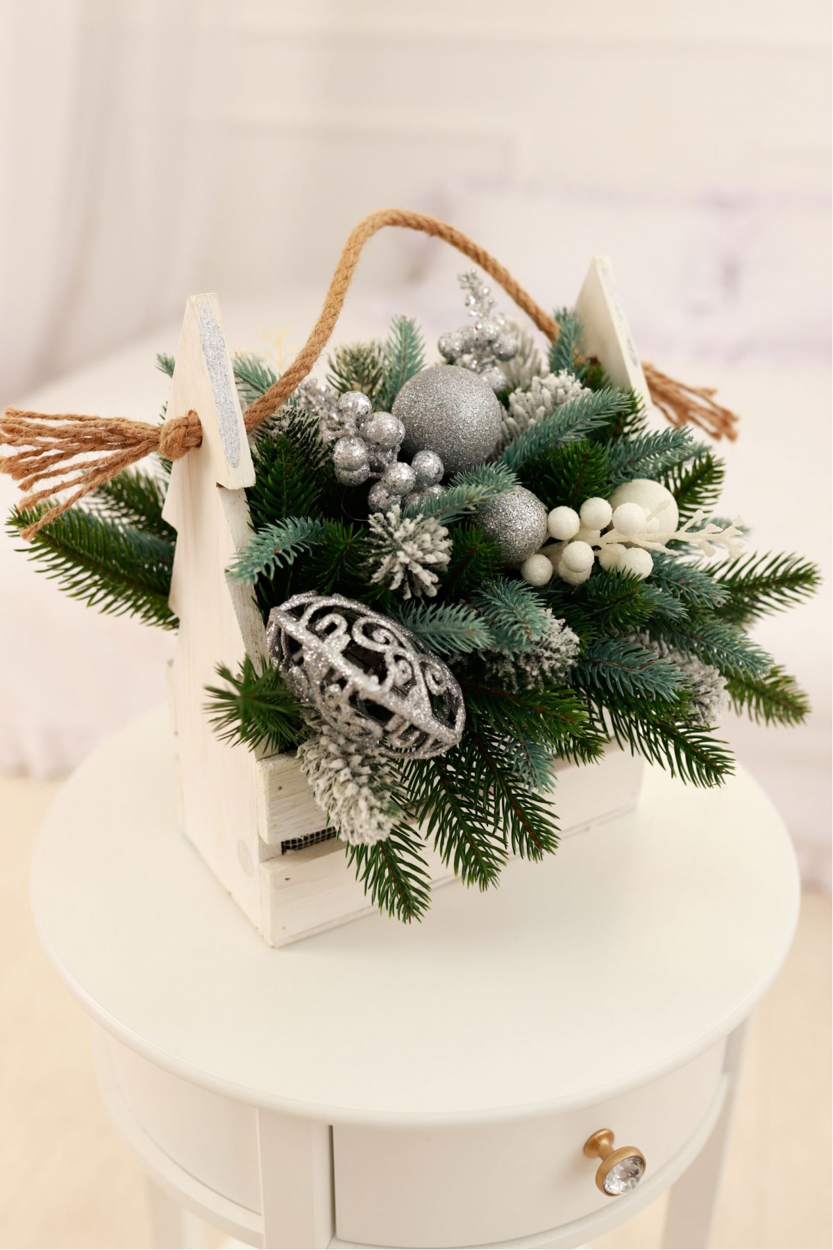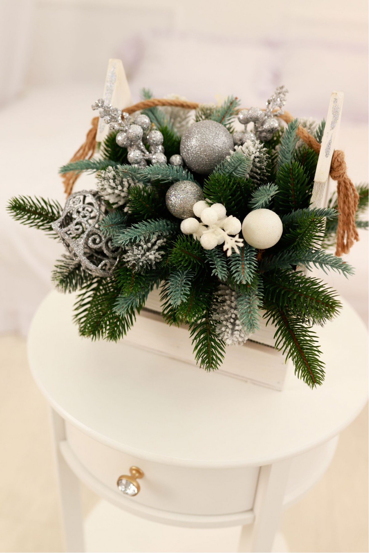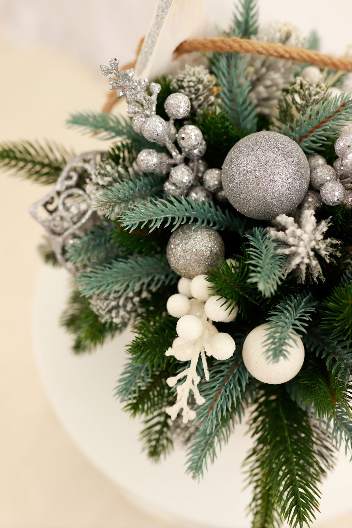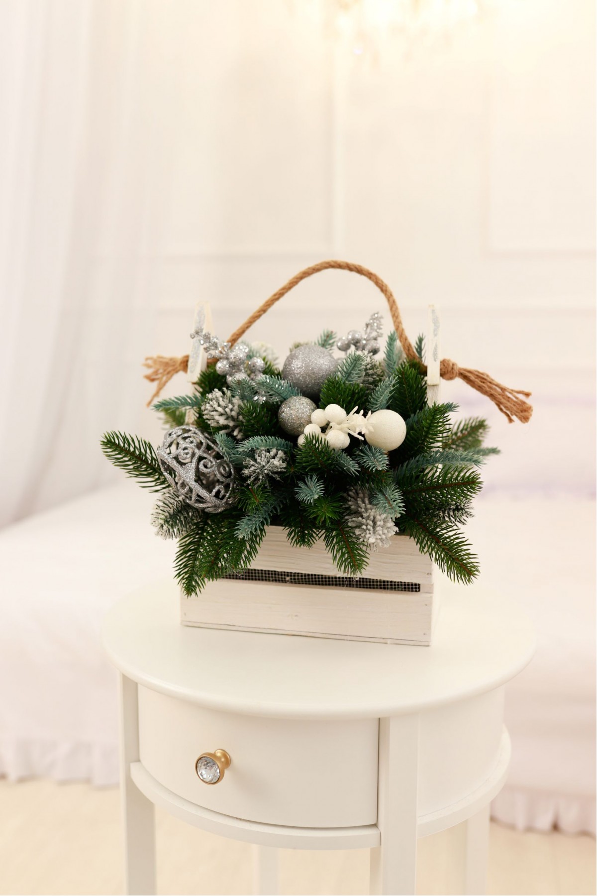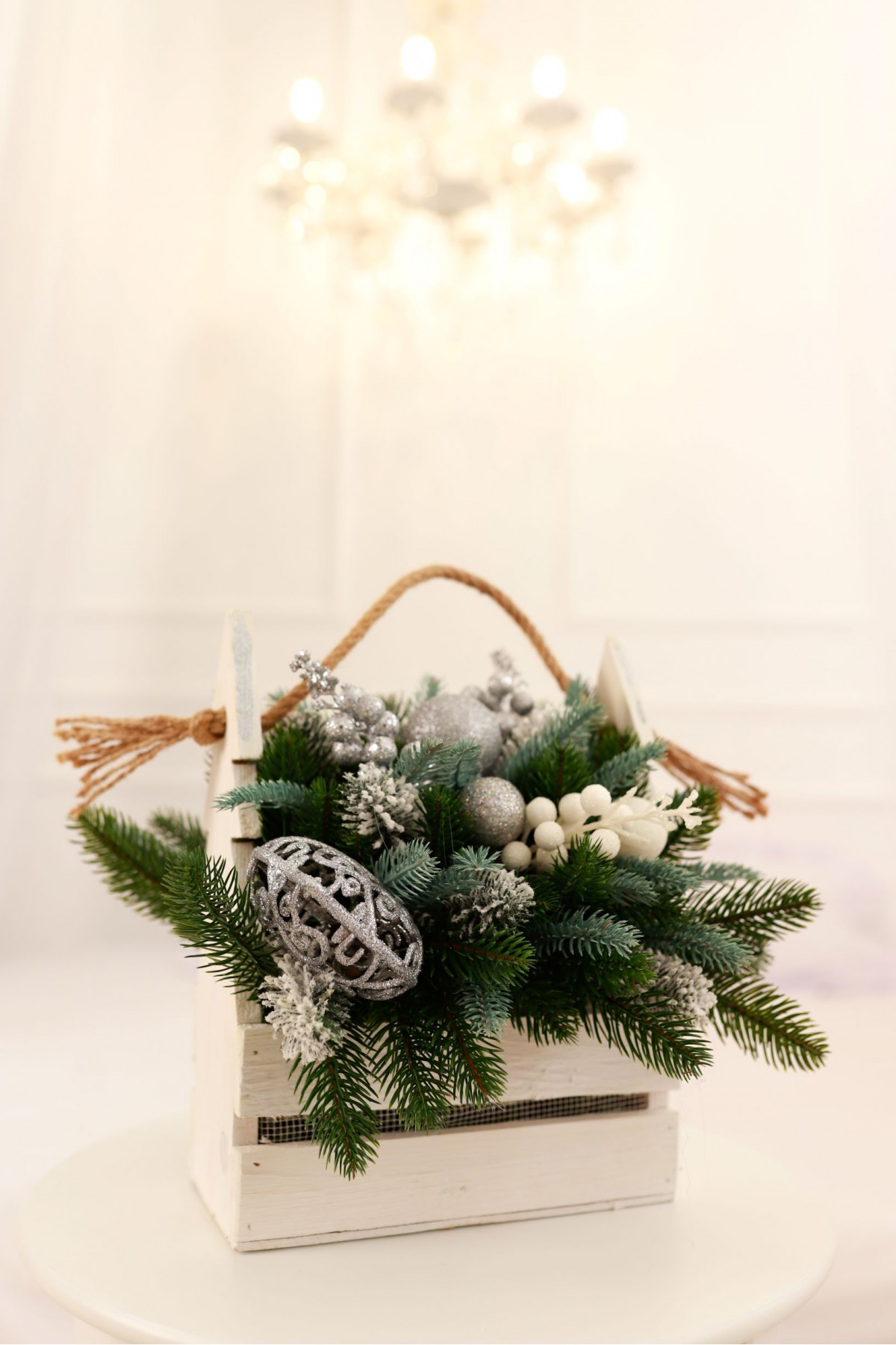З давніх-давен ялинові гілки вважаються одним з найважливіших різдвяних символів. Вони символізують щасливе життя, достаток, сімейний добробут. Кожен елемент декору має сакральний зміст та впливає на процвітання весь наступний рік. Композиція з декорованої хвої в дерев'яному кашпо прикрасить будь-який простір, стане чудовим подарунком напередодні Святвечора, Нового Року.