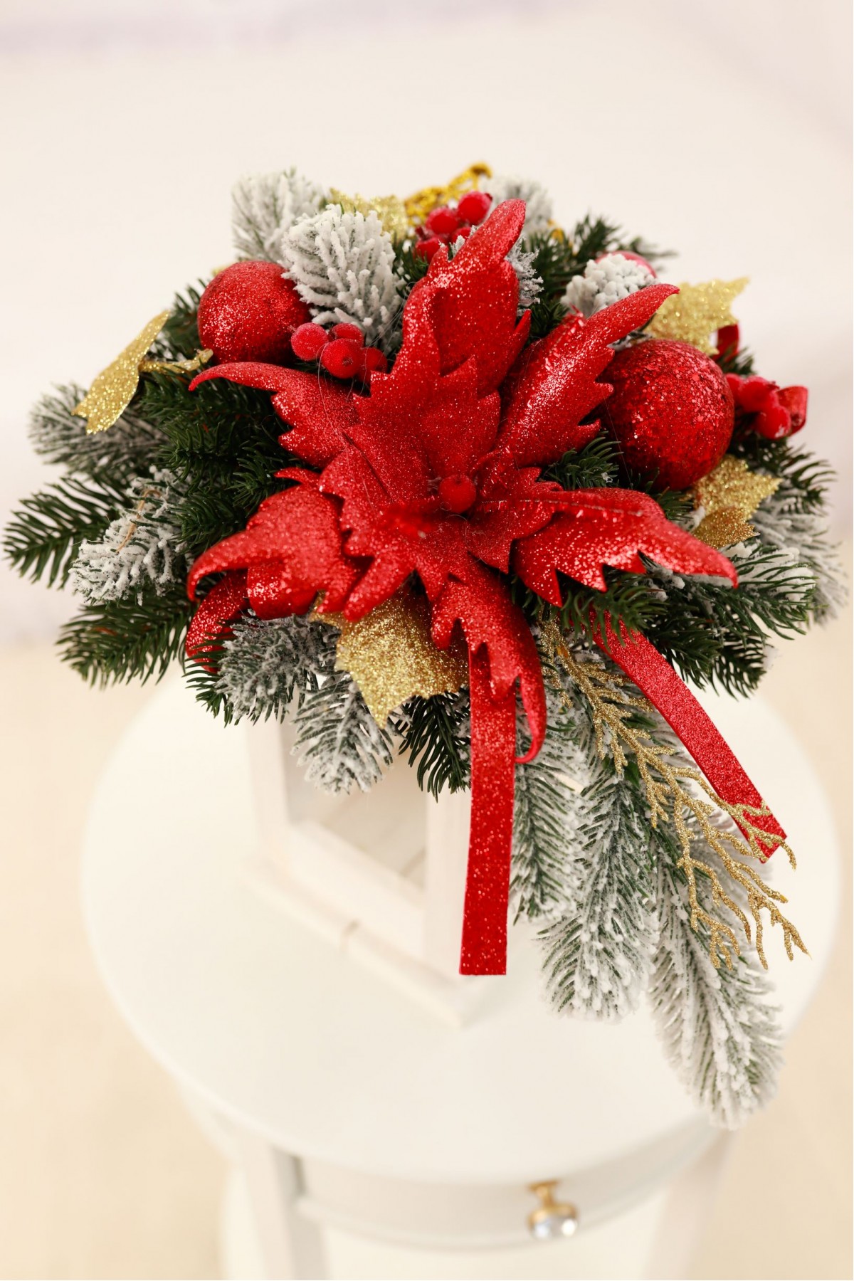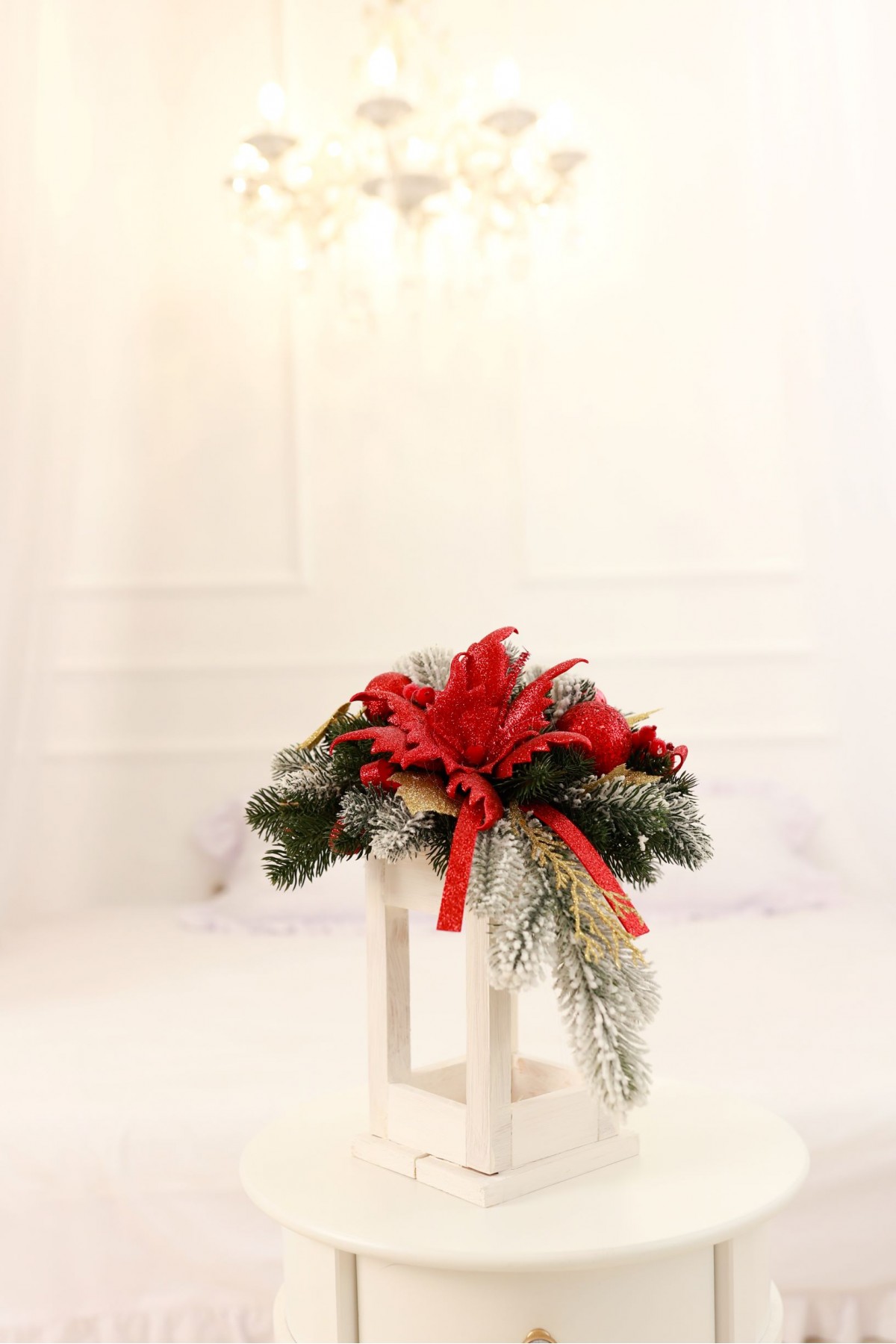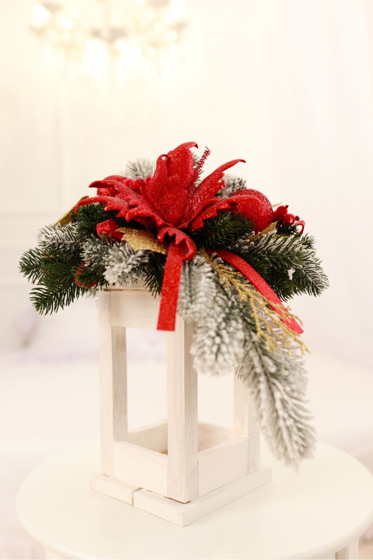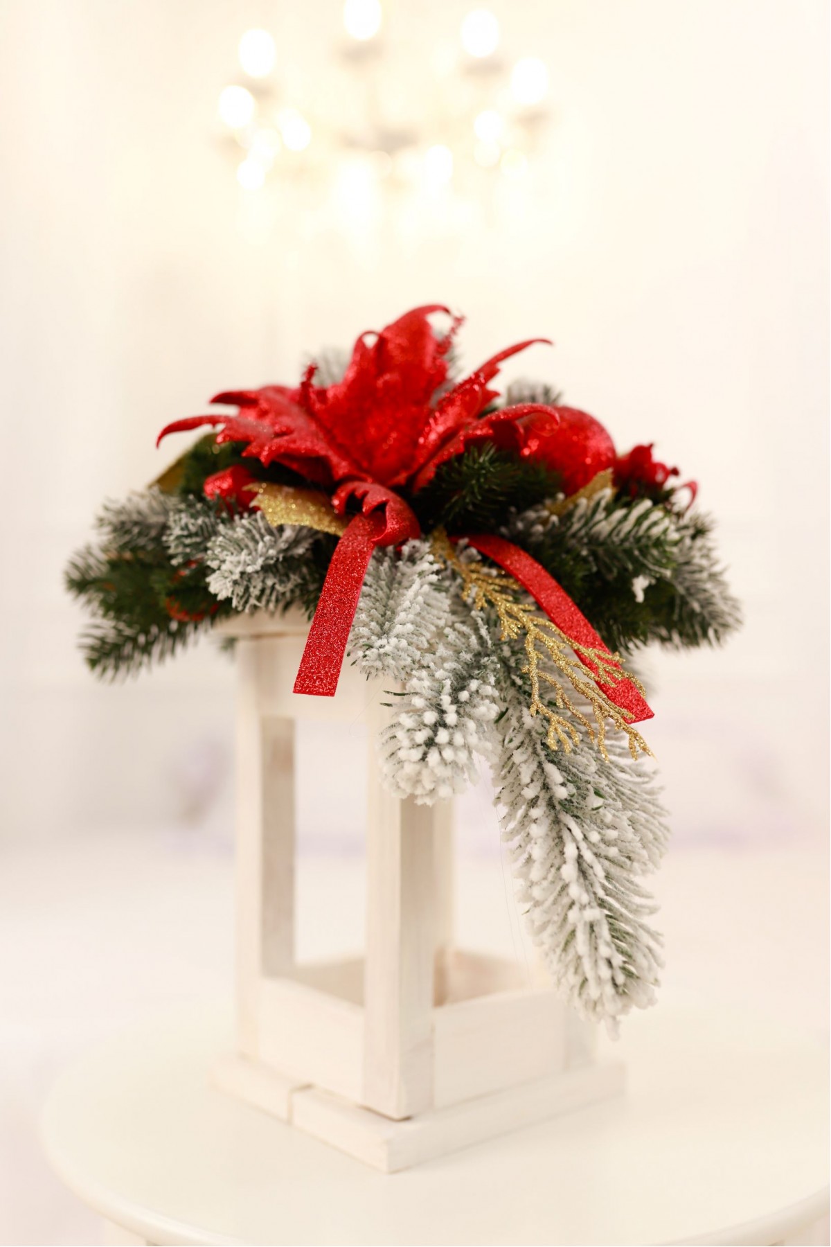 Різдвяний ліхтар у червоному декорі