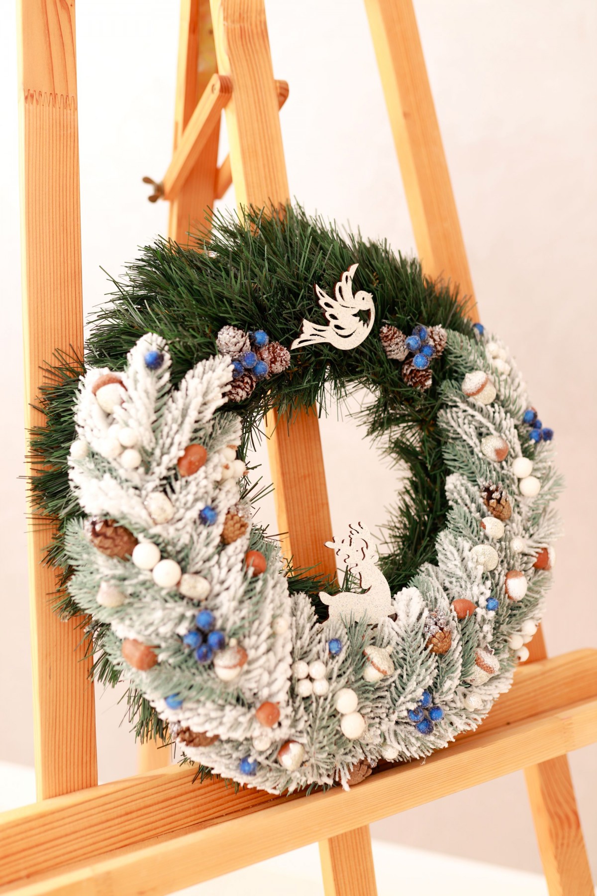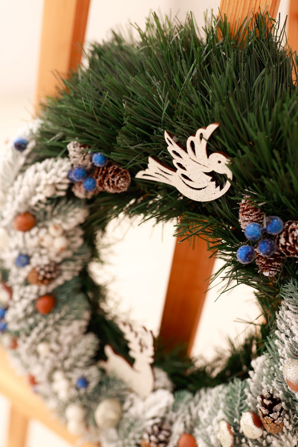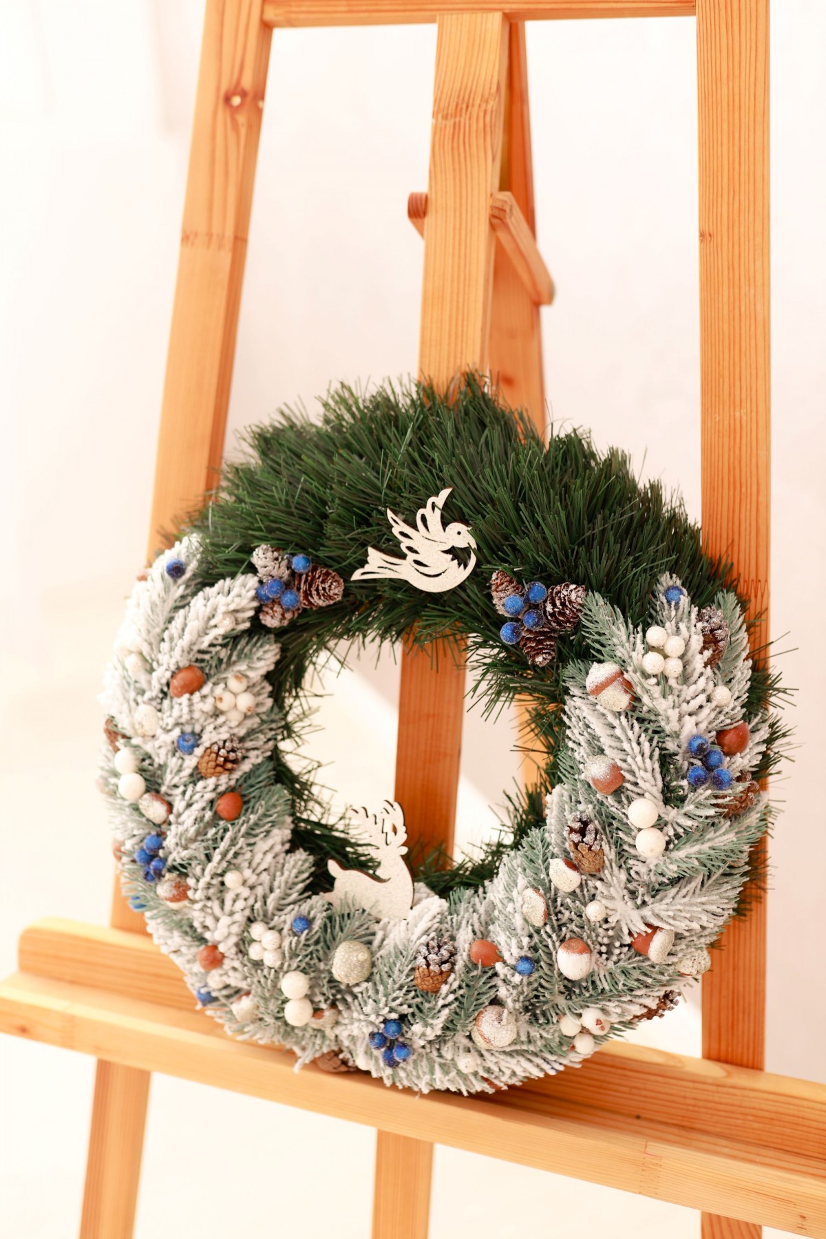 Прикрашений вінок з хвої - це традиційний атрибут Різдва. Він символізує щасливе життя, статки, сімейний добробут. Зелений колір знаменує вічність, розвиток, зростання, коло ототожнюється з циклічністю та нескінченністю. Кожен елемент декору має сакральний зміст, тому з давніх-давен ялиновий вінок вважається одним з найважливіших різдвяних елементів. Вішаючи його на вхідні двері, ми захищаємо свій будинок від усього поганого, зустрічаємо бажаних гостей, залучаємо до будинку достаток, здоров'я, радість.