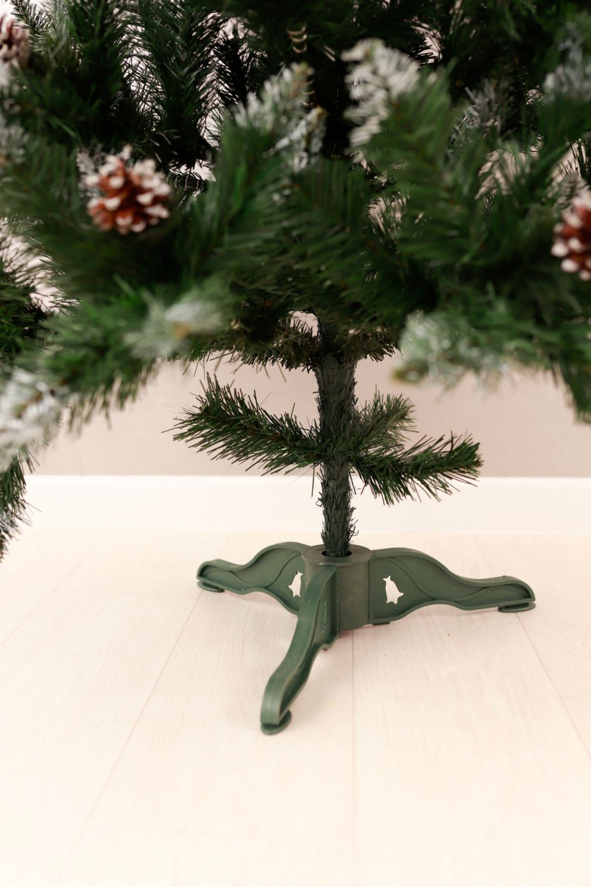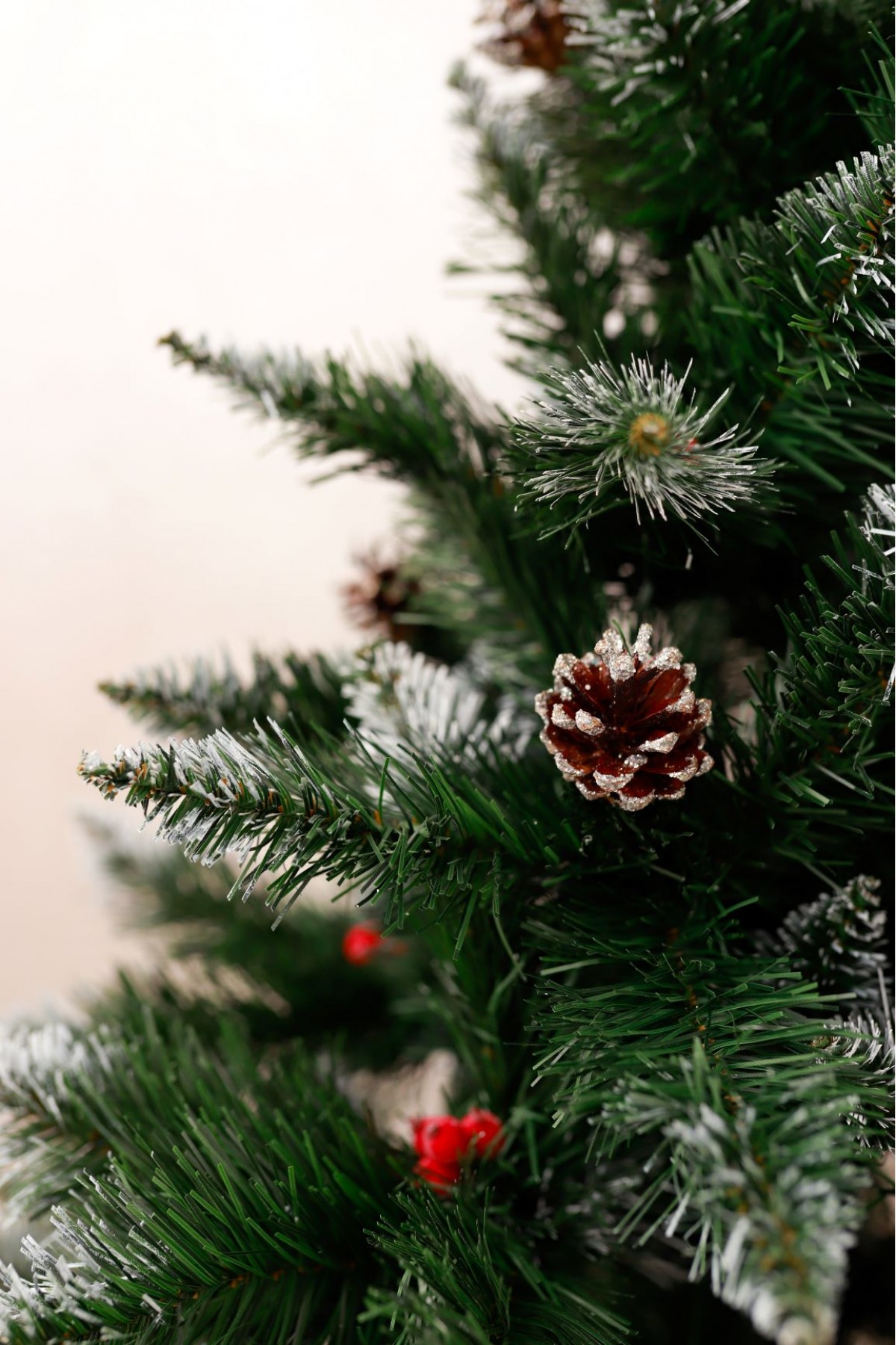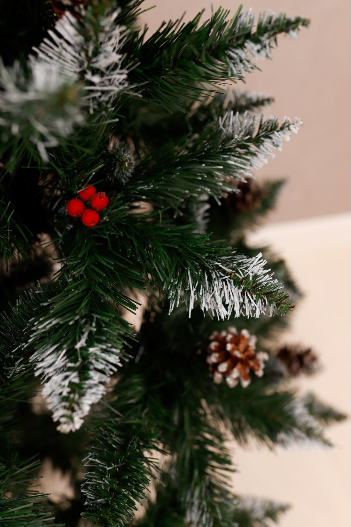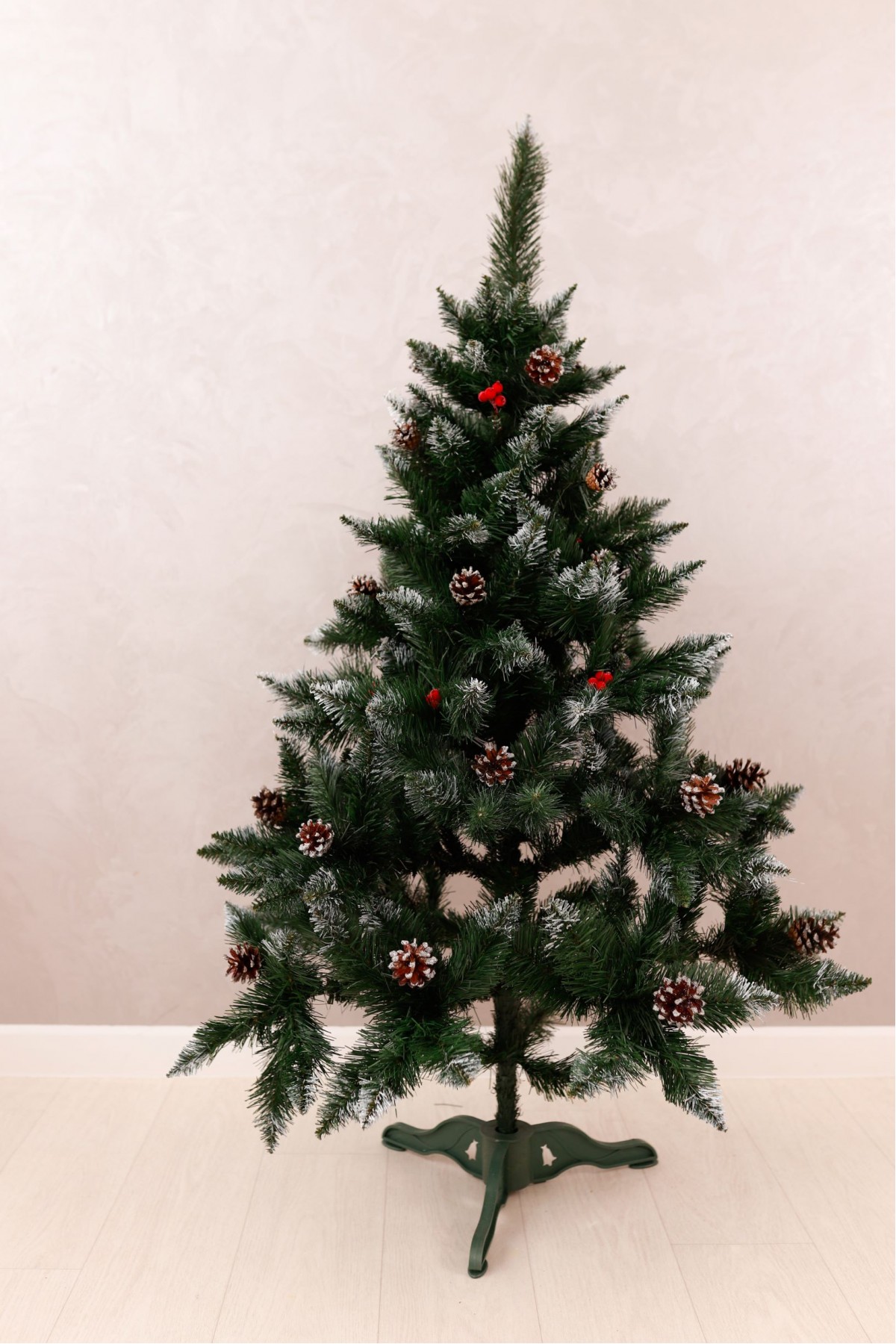 Ялина штучна Елітна з шишками та червоною калиною 1,3 м має пишну хвою насиченого зеленого кольору. Білосніжні кінчики легким шаром покривають гілки, додаючи ніжності та вишуканості цьому різдвяному дереву. На гілках розсипані шишки, що іскряться на світлі. Кожна шишка - це унікальний шедевр природи зі своїм малюнком і текстурою. Яскраві ягоди виділяються на тлі зелені, надаючи ялинці грайливості та жвавості. Цей елемент декору створює контраст між теплом відтінків і холодом зими, пробуджуючи почуття затишку і чарівництва. Ялинка має вигляд справжнього дерева завдяки сучасному підходу у виготовленні хвої з ПВХ матеріалів. Стовбур виконаний з металу, а каркас має дротяну основу, пластикова підставка зручна і стійка, легко розкладається і встановлюється. Модель упакована в компактний картонний ящик. Наші ялинки відповідають стандартам якості, довговічні в експлуатації, гіпоалергенні, безпечні, не схильні до загоряння, прості в установці та зберіганні.