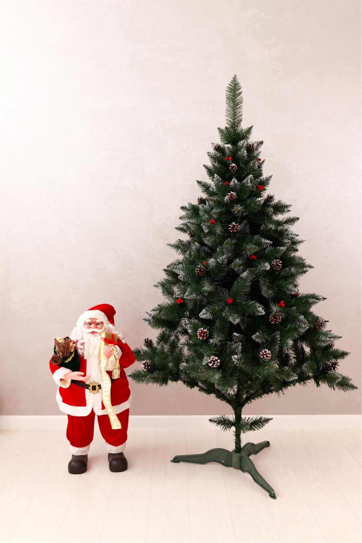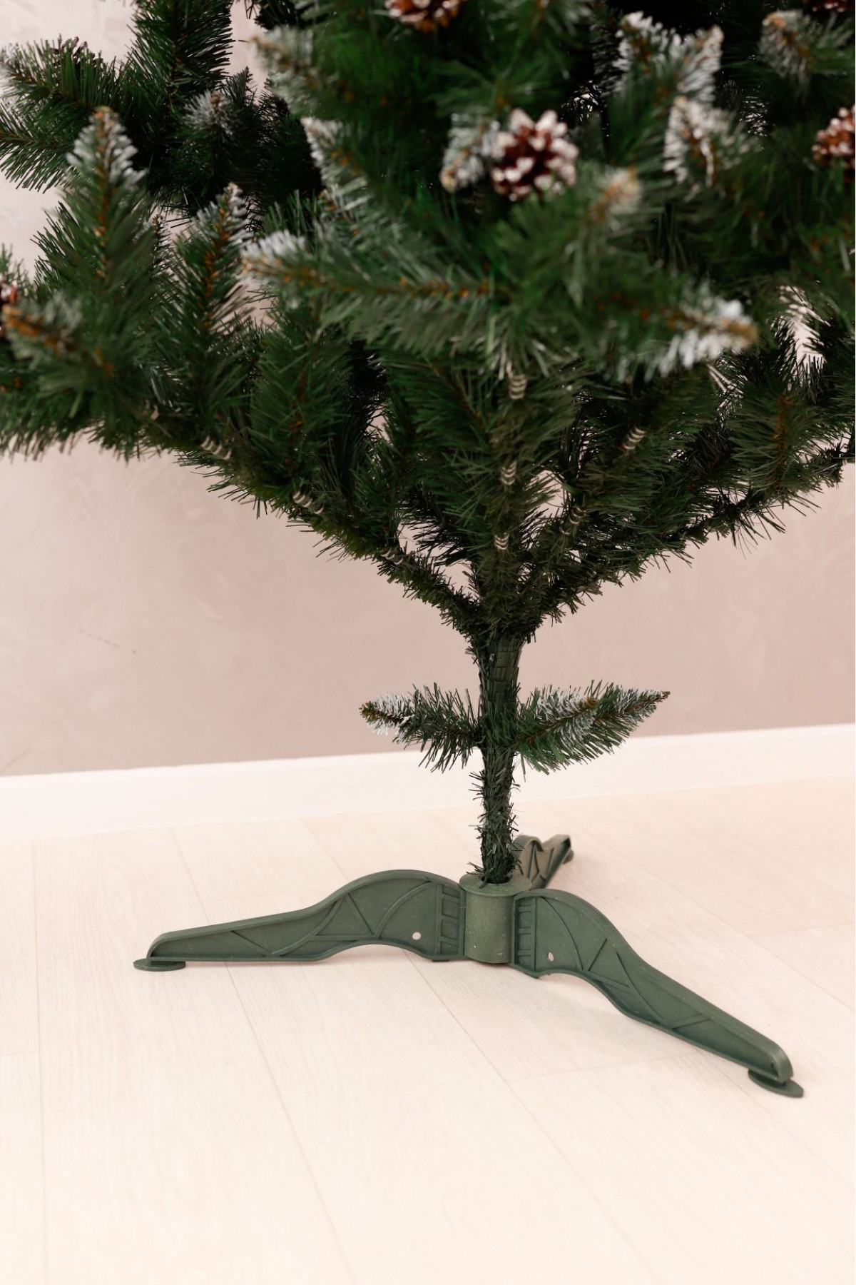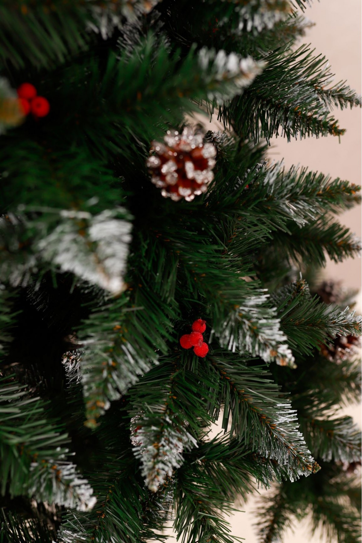 Ялина штучна Елітна з шишками та червоною калиною 1,8 м має пишну хвою насиченого зеленого кольору. Білосніжні кінчики легким шаром покривають гілки, додаючи ніжності та вишуканості цьому різдвяному дереву. На гілках розсипані шишки, що іскряться на світлі. Кожна шишка - це унікальний шедевр природи зі своїм малюнком і текстурою. Яскраві ягоди виділяються на тлі зелені, надаючи ялинці грайливості та жвавості. Цей елемент декору створює контраст між теплом відтінків і холодом зими, пробуджуючи почуття затишку і чарівництва. Ялинка має вигляд справжнього дерева завдяки сучасному підходу у виготовленні хвої з ПВХ матеріалів. Стовбур виконаний з металу, а каркас має дротяну основу, пластикова підставка зручна і стійка, легко розкладається і встановлюється. Модель упакована в компактний картонний ящик. Наші ялинки відповідають стандартам якості, довговічні в експлуатації, гіпоалергенні, безпечні, не схильні до загоряння, прості в установці та зберіганні.