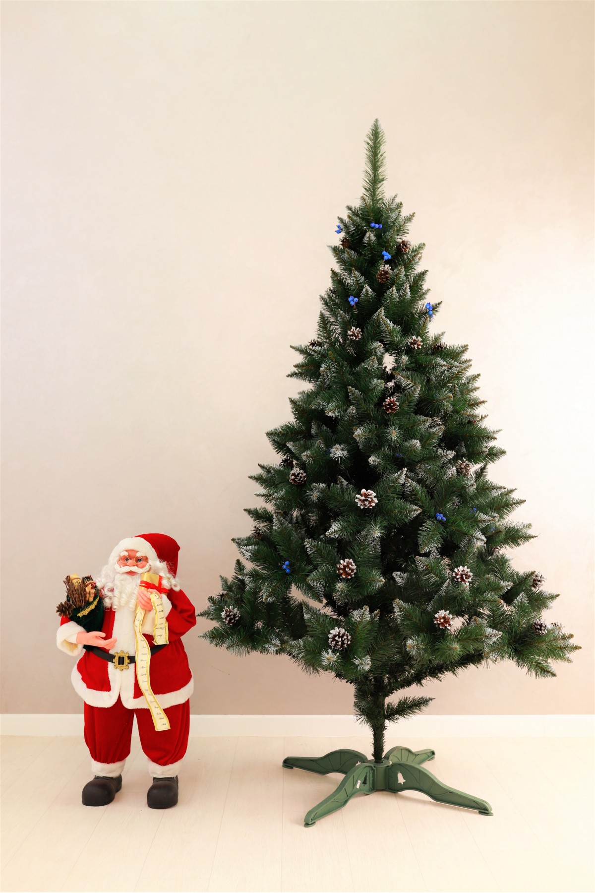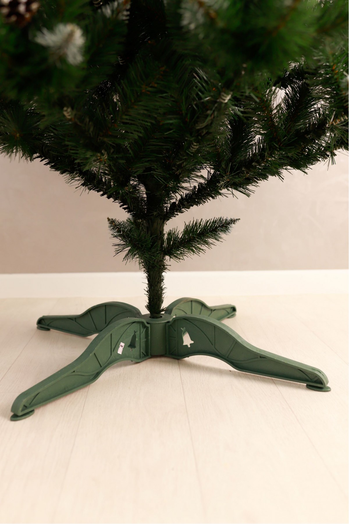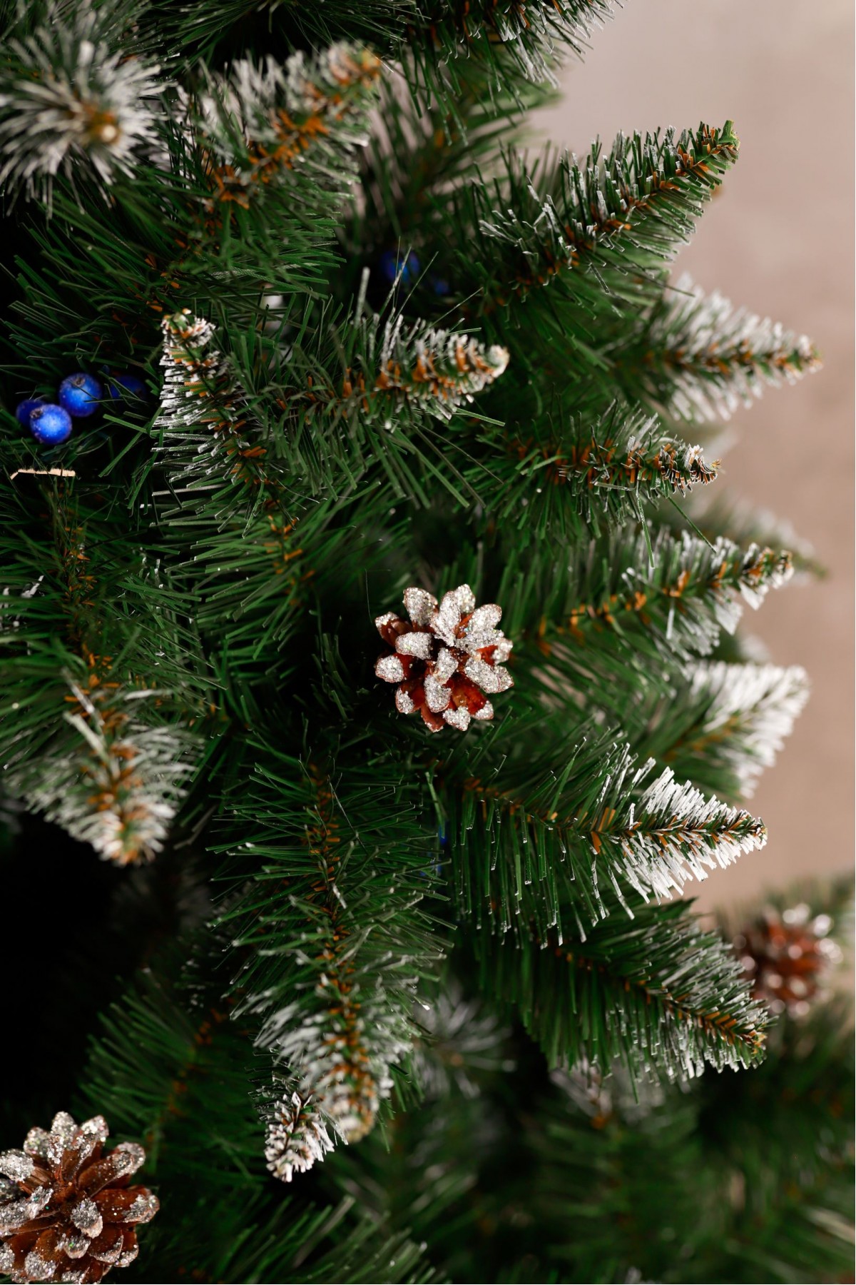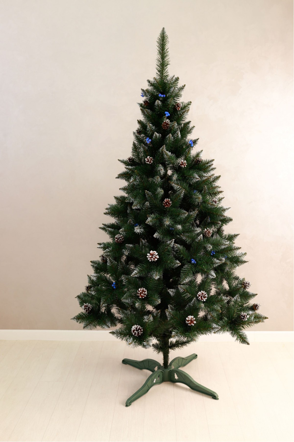Ялина штучна Елітна з шишками та синьою калиною 2,0 м має пишну хвою насиченого зеленого кольору. Білосніжні кінчики легким шаром покривають гілки, додаючи ніжності та вишуканості цьому різдвяному дереву. На гілках розсипані шишки, що іскряться на світлі. Кожна шишка - це унікальний шедевр природи зі своїм малюнком і текстурою. Яскраві ягоди виділяються на тлі зелені, надаючи ялинці грайливості та жвавості. Цей елемент декору створює контраст між теплом відтінків і холодом зими, пробуджуючи почуття затишку і чарівництва. Ялинка має вигляд справжнього дерева завдяки сучасному підходу у виготовленні хвої з ПВХ матеріалів. Стовбур виконаний з металу, а каркас має дротяну основу, пластикова підставка зручна і стійка, легко розкладається і встановлюється. Модель упакована в компактний картонний ящик. Наші ялинки відповідають стандартам якості, довговічні в експлуатації, гіпоалергенні, безпечні, не схильні до загоряння, прості в установці та зберіганні.