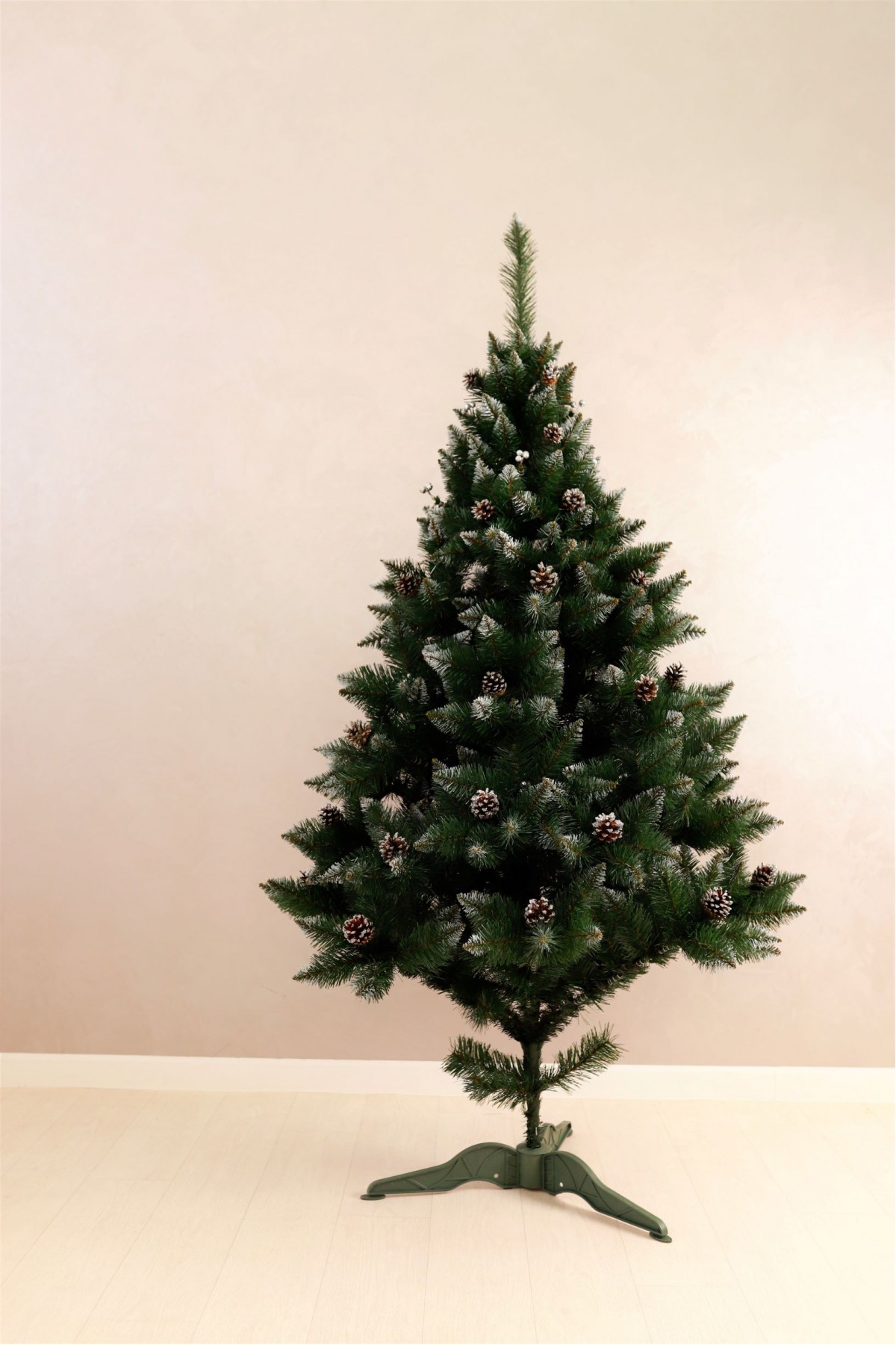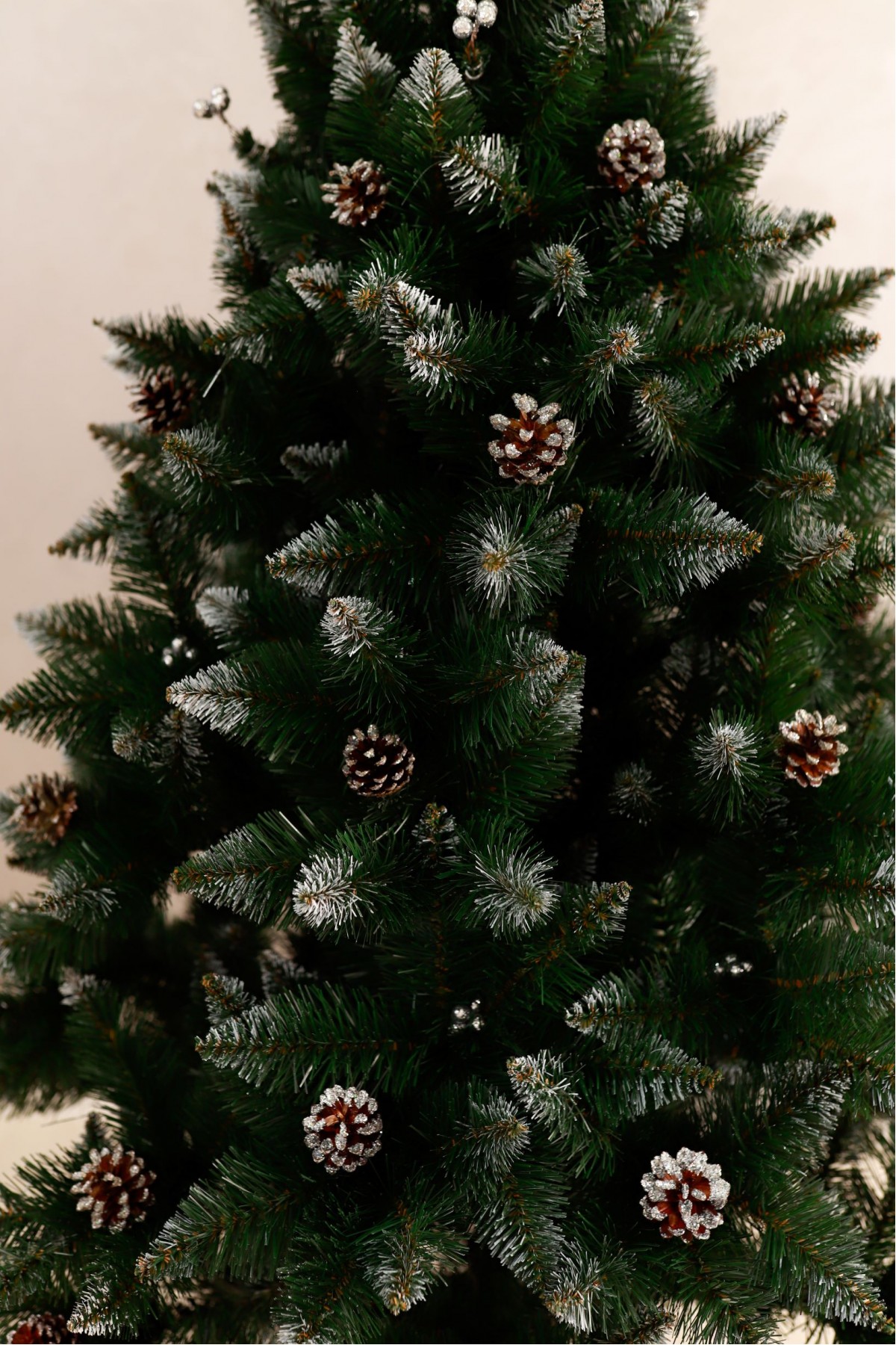 Ялина штучна Елітна з шишками та срібною калиною 1,8 м має пишну хвою насиченого зеленого кольору. Білосніжні кінчики легким шаром покривають гілки, додаючи ніжності та вишуканості цьому різдвяному дереву. На гілках розсипані шишки, що іскряться на світлі. Кожна шишка - це унікальний шедевр природи зі своїм малюнком і текстурою. Яскраві ягоди виділяються на тлі зелені, надаючи ялинці грайливості та жвавості. Цей елемент декору створює контраст між теплом відтінків і холодом зими, пробуджуючи почуття затишку і чарівництва. Ялинка має вигляд справжнього дерева завдяки сучасному підходу у виготовленні хвої з ПВХ матеріалів. Стовбур виконаний з металу, а каркас має дротяну основу, пластикова підставка зручна і стійка, легко розкладається і встановлюється. Модель упакована в компактний картонний ящик. Наші ялинки відповідають стандартам якості, довговічні в експлуатації, гіпоалергенні, безпечні, не схильні до загоряння, прості в установці та зберіганні.