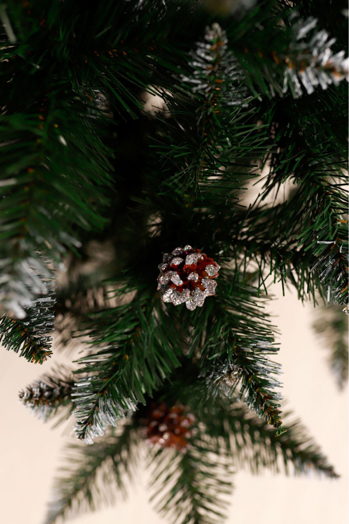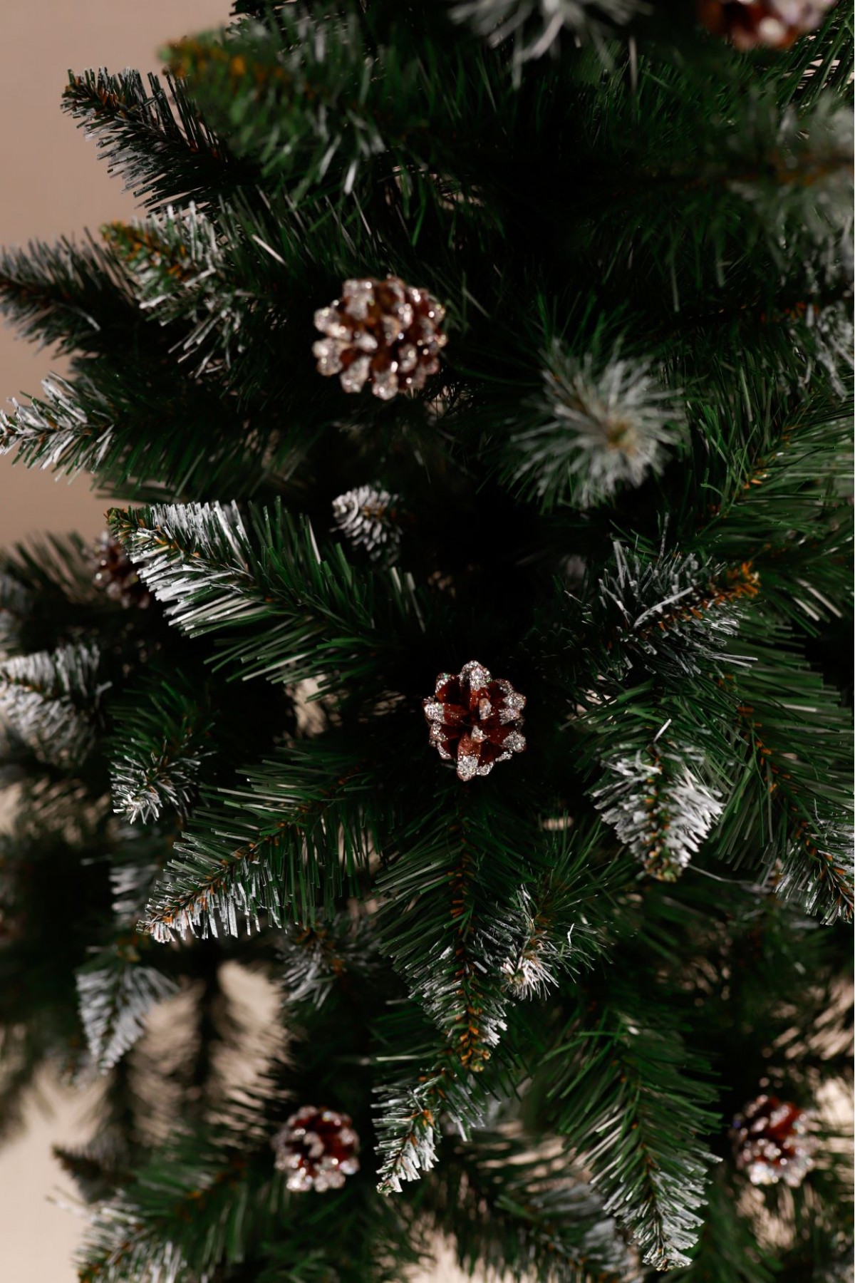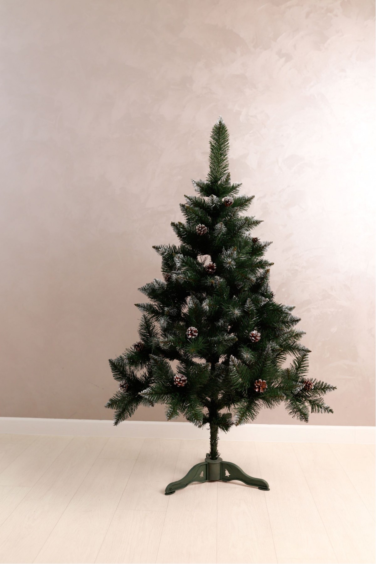 Ялина штучна Елітна з шишками 1,3 м має пишну хвою насиченого зеленого кольору. Білосніжні кінчики легким шаром покривають гілки, додаючи ніжності та вишуканості цьому різдвяному дереву. На гілках розсипані шишки, що іскряться на світлі. Кожна шишка - це унікальний шедевр природи зі своїм малюнком і текстурою. Розкішна форма крони на 100% створює образ натуральної ялини.