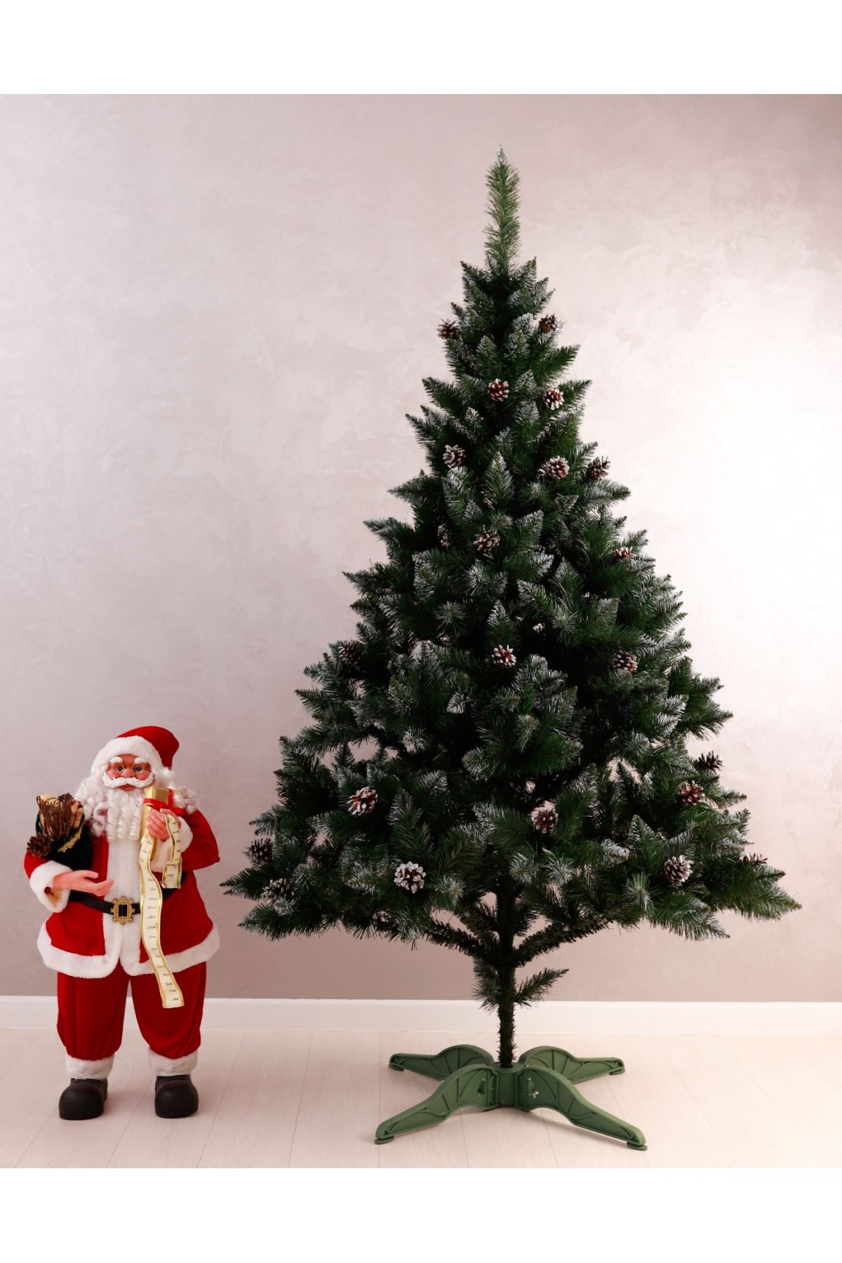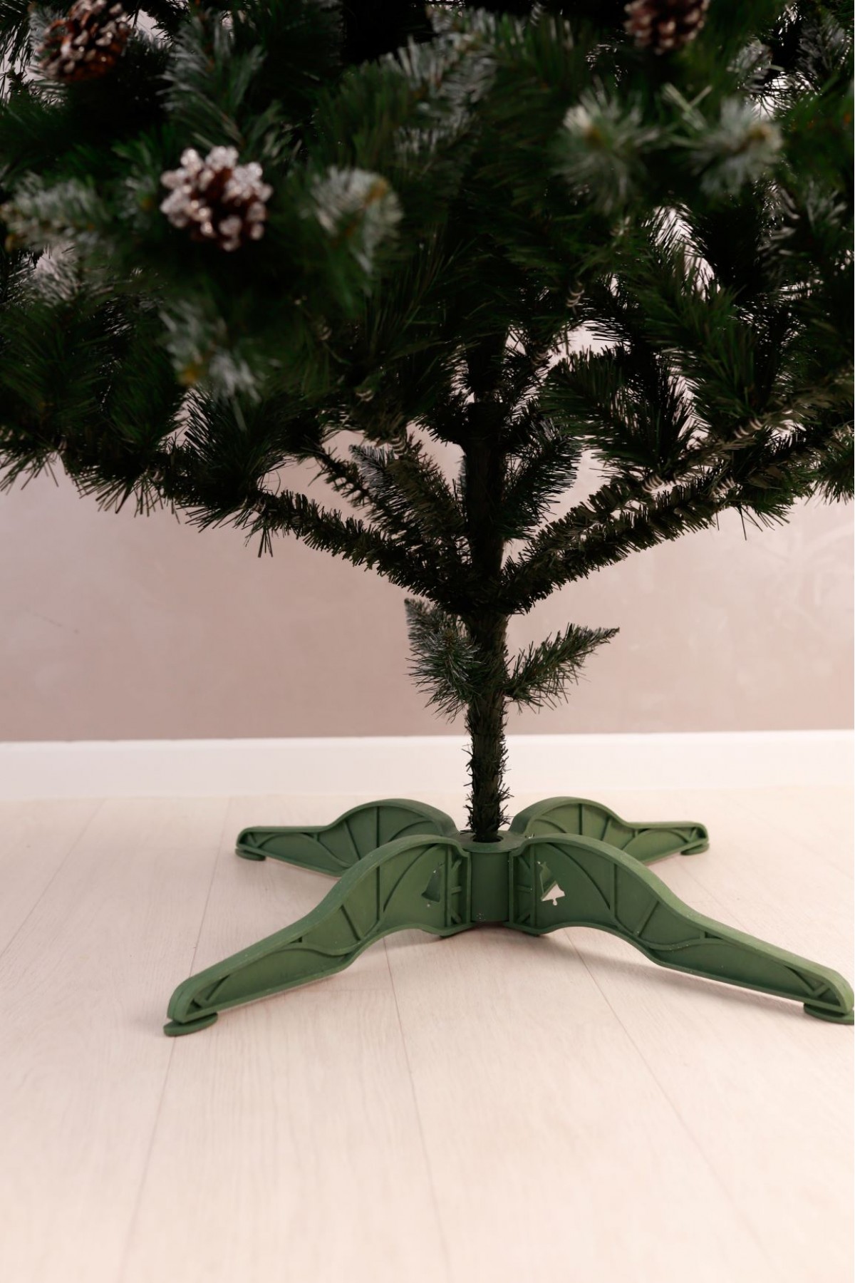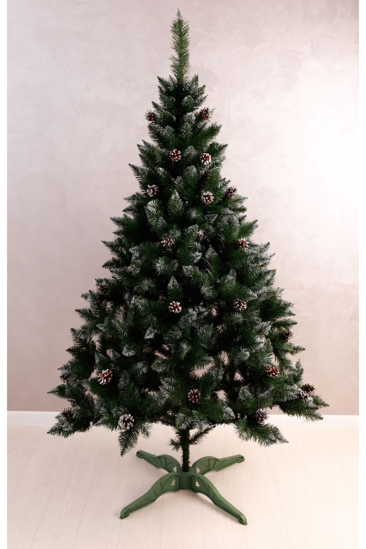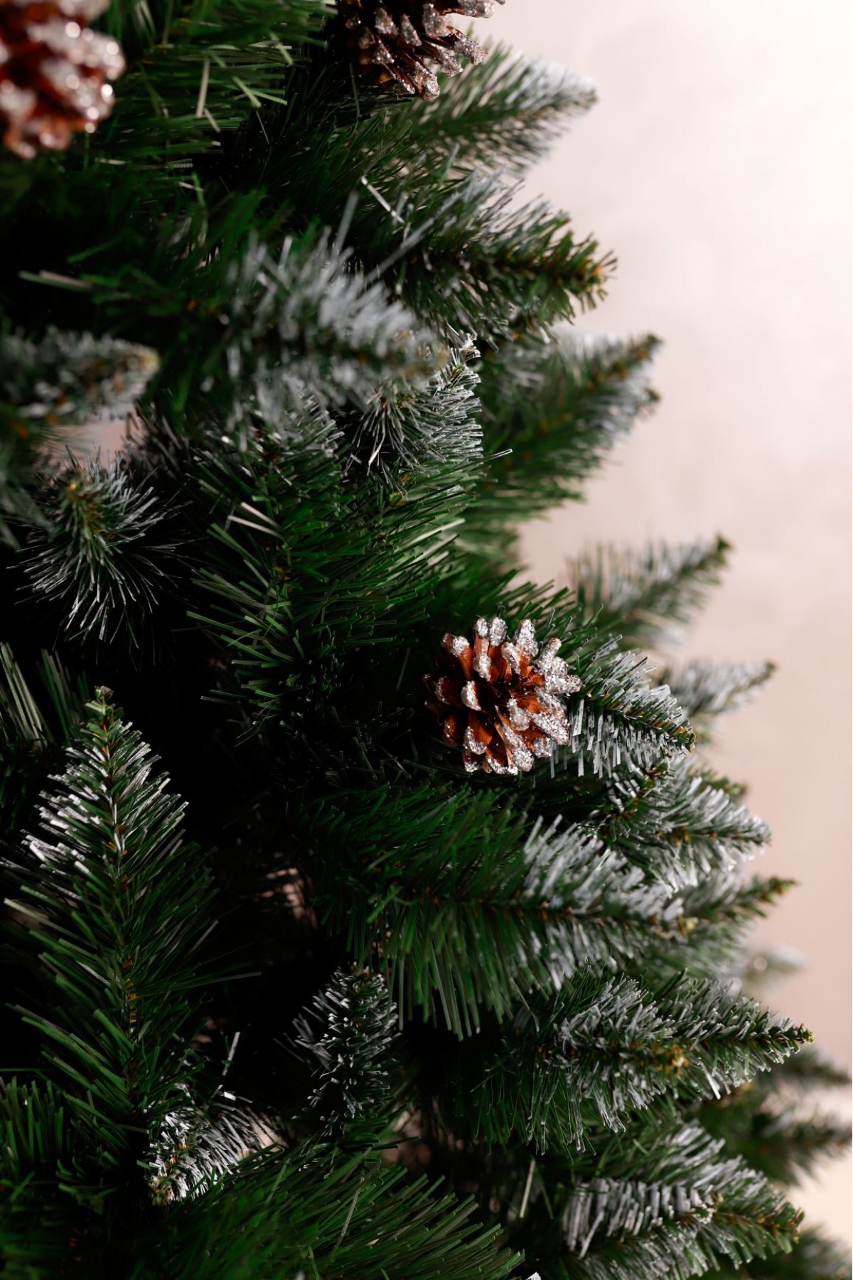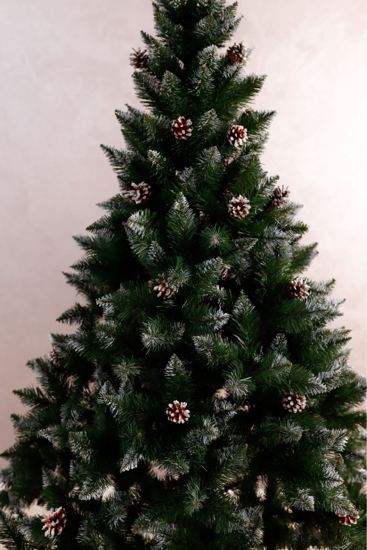 Ялина штучна Елітна з шишками 2,0 м має пишну хвою насиченого зеленого кольору. Білосніжні кінчики легким шаром покривають гілки, додаючи ніжності та вишуканості цьому різдвяному дереву. На гілках розсипані шишки, що іскряться на світлі. Кожна шишка - це унікальний шедевр природи зі своїм малюнком і текстурою. Розкішна форма крони на 100% створює образ натуральної ялини.