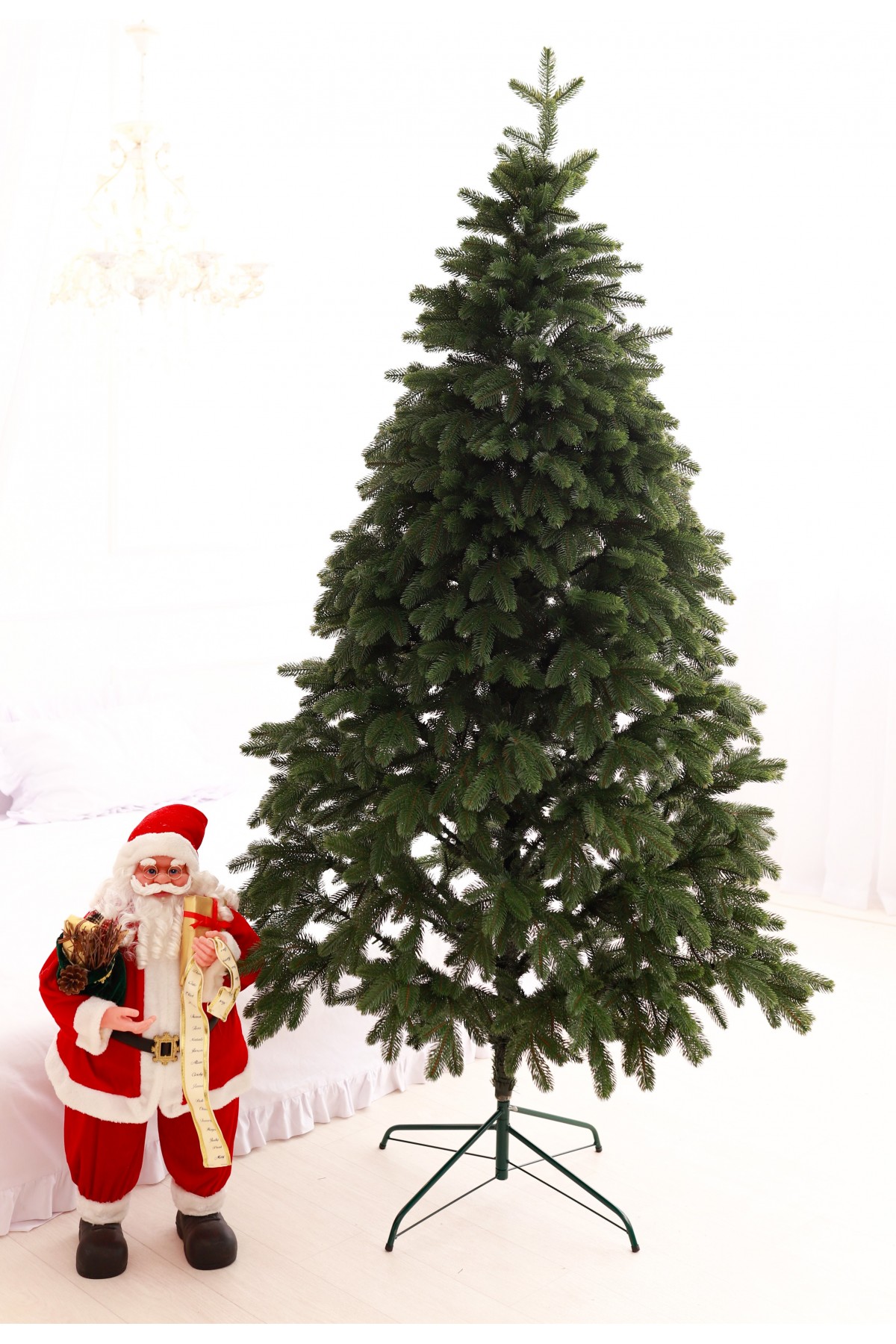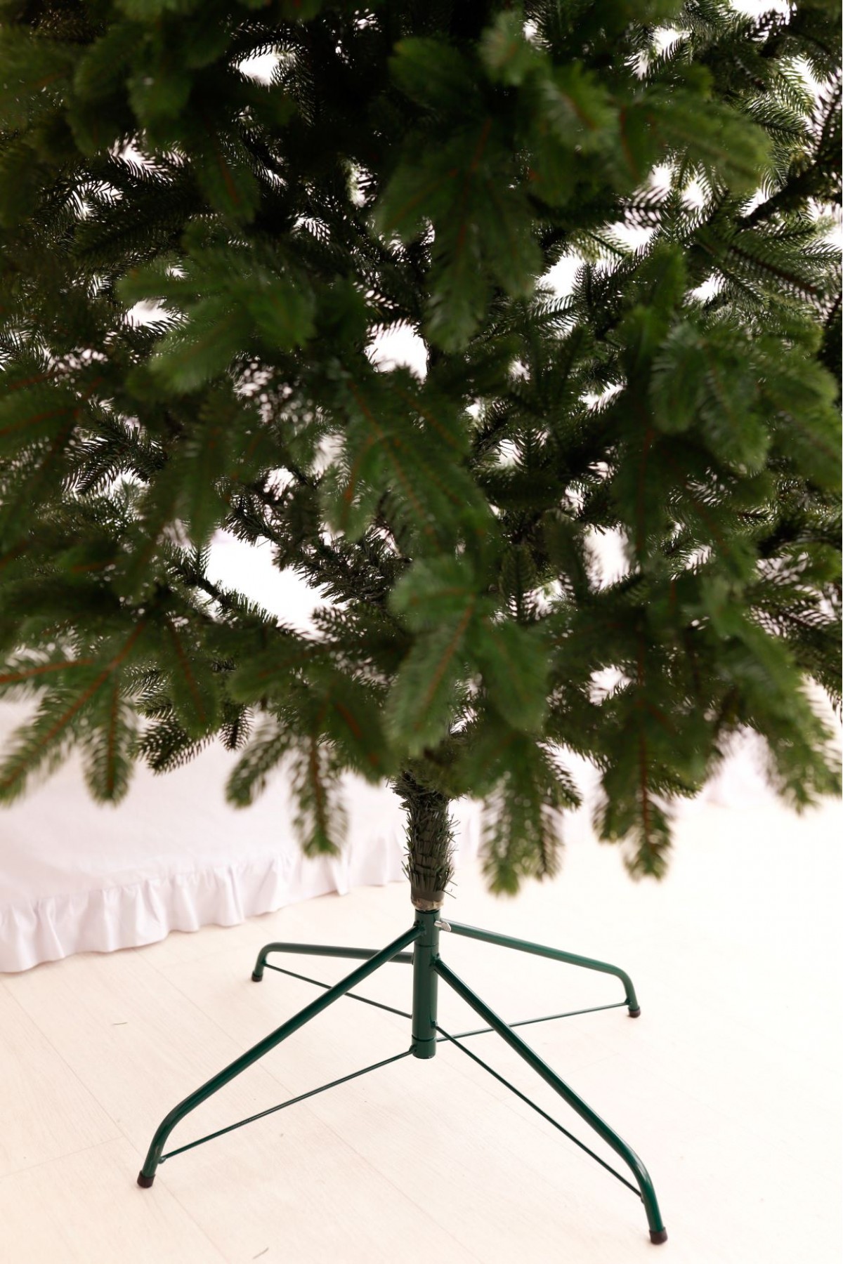 Дана модель створена за індивідуальним замовленням зі збільшенням кількості хвойних гілочок на кожному ярусі крони. Гілочки та голки передають всю текстуру і колір справжніх ялинок. Її зелене забарвлення багате і насичене, візуально створює ефект природних м'яких хвиль і шорсткості. Стовбур виконаний з металу, а каркас має дротяну основу, сталева підставка зручна і стійка, легко розкладається і встановлюється. Модель упакована в компактний картонний ящик.