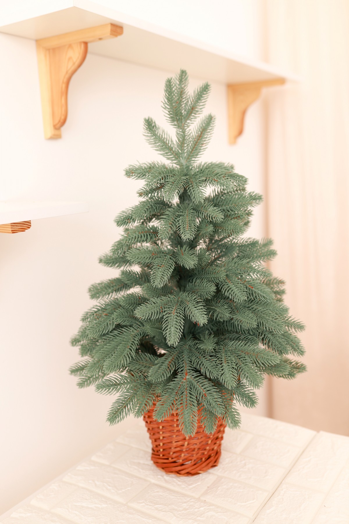 Ялина лита блакитна 70 см у горщику з лози - витончена різдвяна ялинка, яка ідеально підійде для прикрашання дятячої кімнати, офісу, приймалень, барної стійки, адміністративної стійки (ресепшн), робочого столу. Ялинка відмінно впишеться в святковий інтер'єр невеликого приміщення. Також її можна використовувати в шкільних театральних постановках, на ранках, як оригінальний подарунок. Хвоя у ялинки середньо-блакитного кольору, м'яка, гнучка, виготовлена зі спеціального гіпоалергенного екопластику. Лита ялина своїм зовнішнім виглядом не поступається в красі натуральним деревам з карпатських лісів. А горщик з лози гармонійно доповнює природний образ моделі.