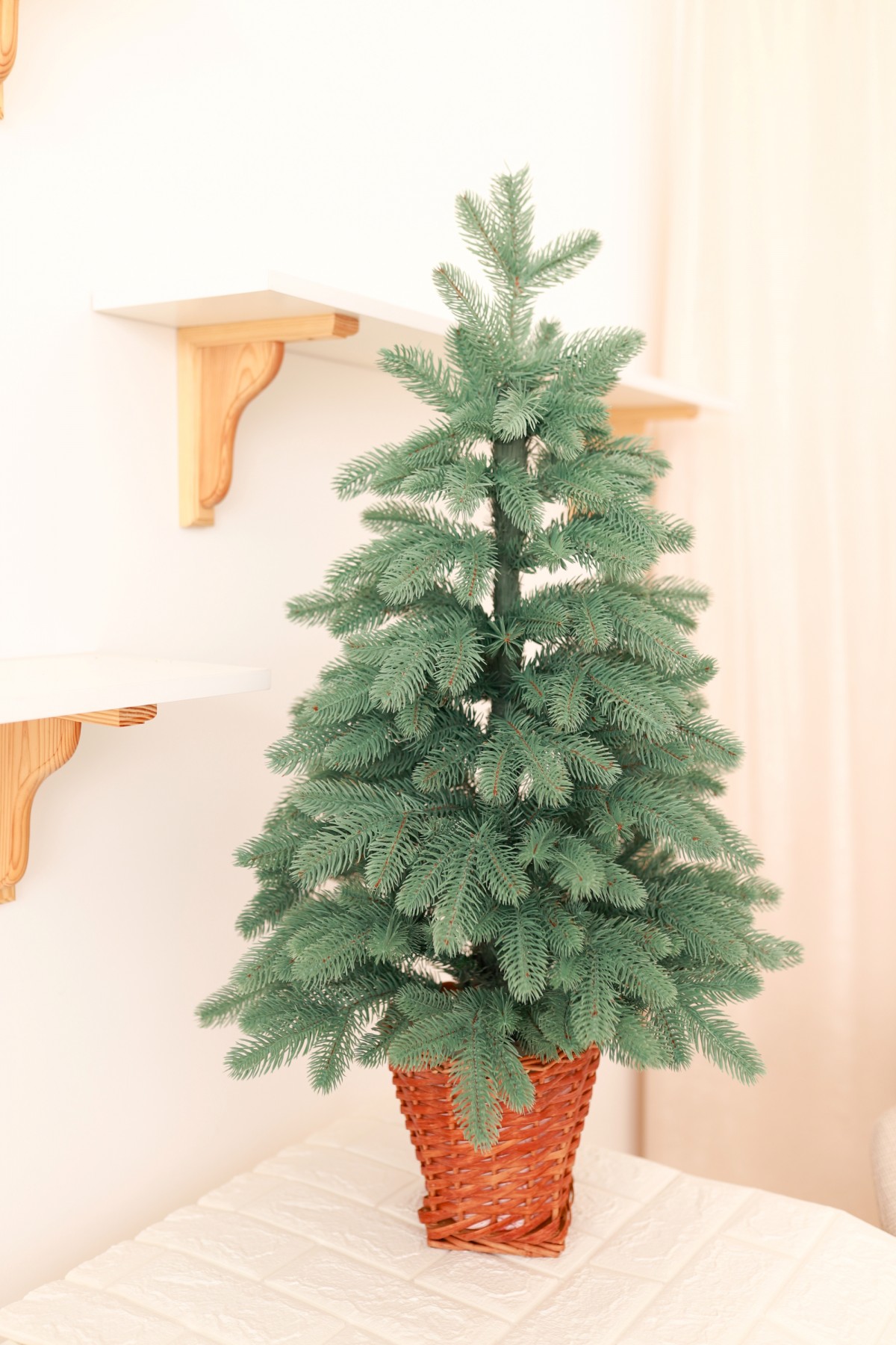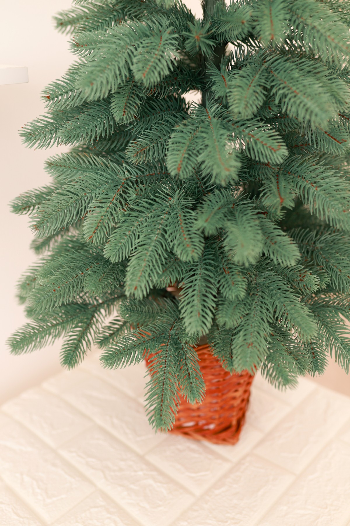 Ялина лита блакитна 90 см у горщику з лози - витончена різдвяна ялинка, яка ідеально підійде для прикрашання дятячої кімнати, офісу, приймалень, барної стійки, адміністративної стійки (ресепшн), робочого столу. Ялинка відмінно впишеться в святковий інтер'єр невеликого приміщення. Також її можна використовувати в шкільних театральних постановках, на ранках, як оригінальний подарунок. Хвоя у ялинки середньо-блакитного кольору, м'яка, гнучка, виготовлена зі спеціального гіпоалергенного екопластику. Лита ялина своїм зовнішнім виглядом не поступається в красі натуральним деревам з карпатських лісів. А горщик з лози гармонійно доповнює природний образ моделі.