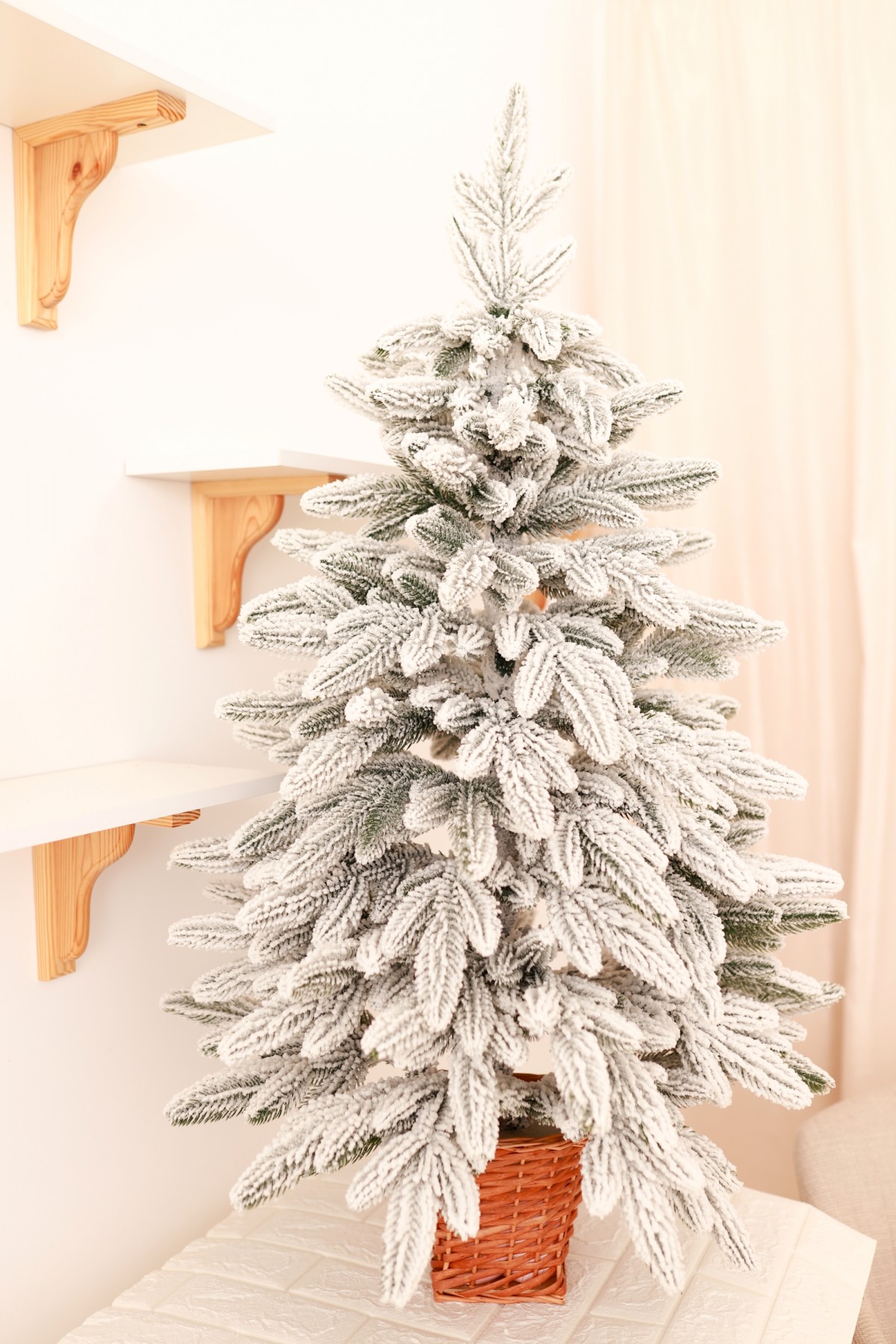 Ялина лита засніжена 110 см у горщику з лози - витончена різдвяна ялинка, яка ідеально підійде для прикрашання дятячої кімнати, офісу, приймалень, барної стійки, адміністративної стійки (ресепшн), робочого столу. Ялинка відмінно впишеться в святковий інтер'єр невеликого приміщення. Також її можна використовувати в шкільних театральних постановках, на ранках, як оригінальний подарунок. Засніженая хвоя ялинки м'яка, гнучка, виготовлена зі спеціального гіпоалергенного екопластику. Лита ялина своїм зовнішнім виглядом не поступається в красі натуральним деревам з карпатських лісів. А горщик з лози гармонійно доповнює природний образ моделі.