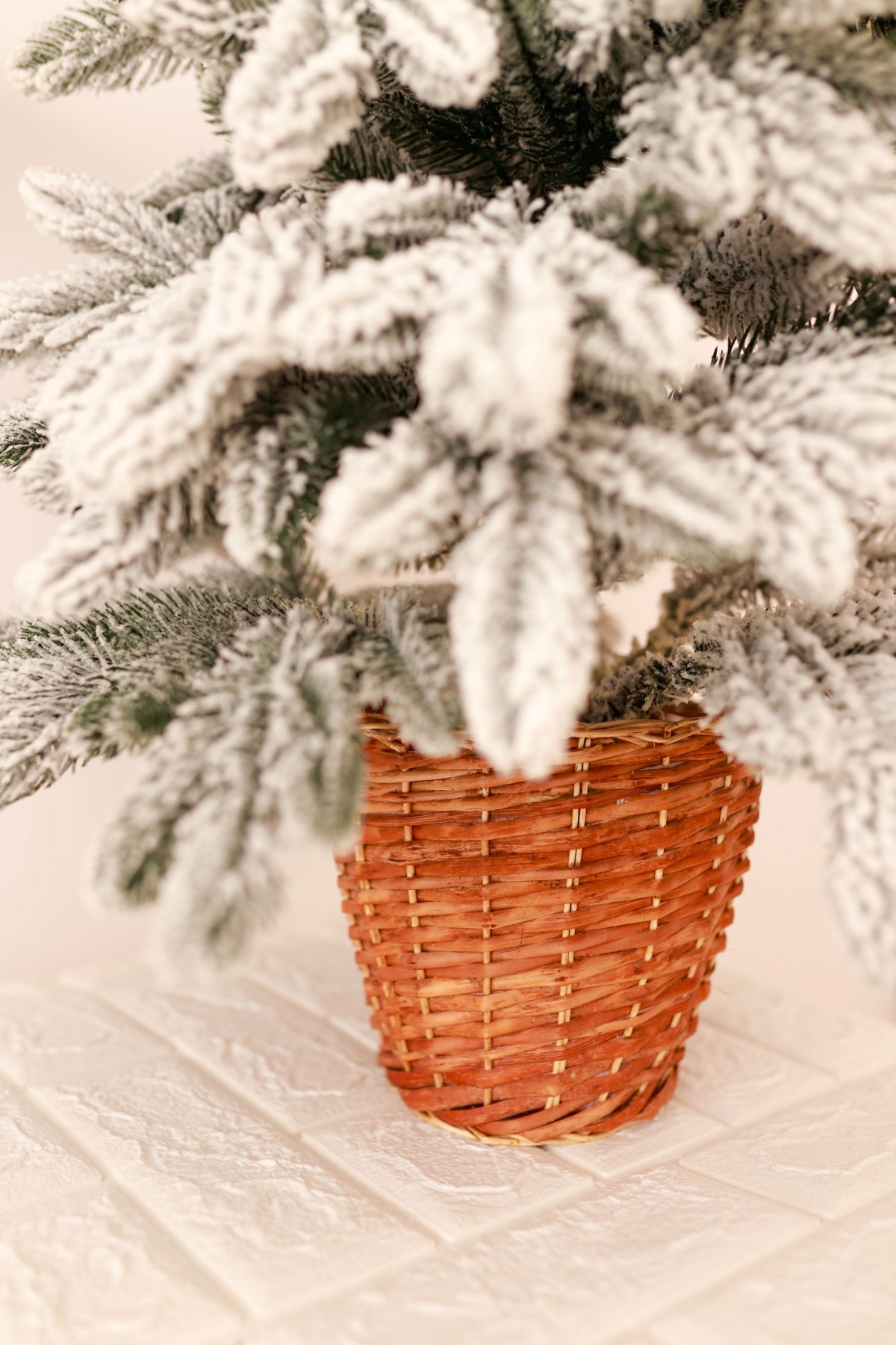 Ялина лита засніжена 90 см у горщику з лози - витончена різдвяна ялинка, яка ідеально підійде для прикрашання дятячої кімнати, офісу, приймалень, барної стійки, адміністративної стійки (ресепшн), робочого столу. Ялинка відмінно впишеться в святковий інтер'єр невеликого приміщення. Також її можна використовувати в шкільних театральних постановках, на ранках, як оригінальний подарунок. Засніженая хвоя ялинки м'яка, гнучка, виготовлена зі спеціального гіпоалергенного екопластику. Лита ялина своїм зовнішнім виглядом не поступається в красі натуральним деревам з карпатських лісів. А горщик з лози гармонійно доповнює природний образ моделі.