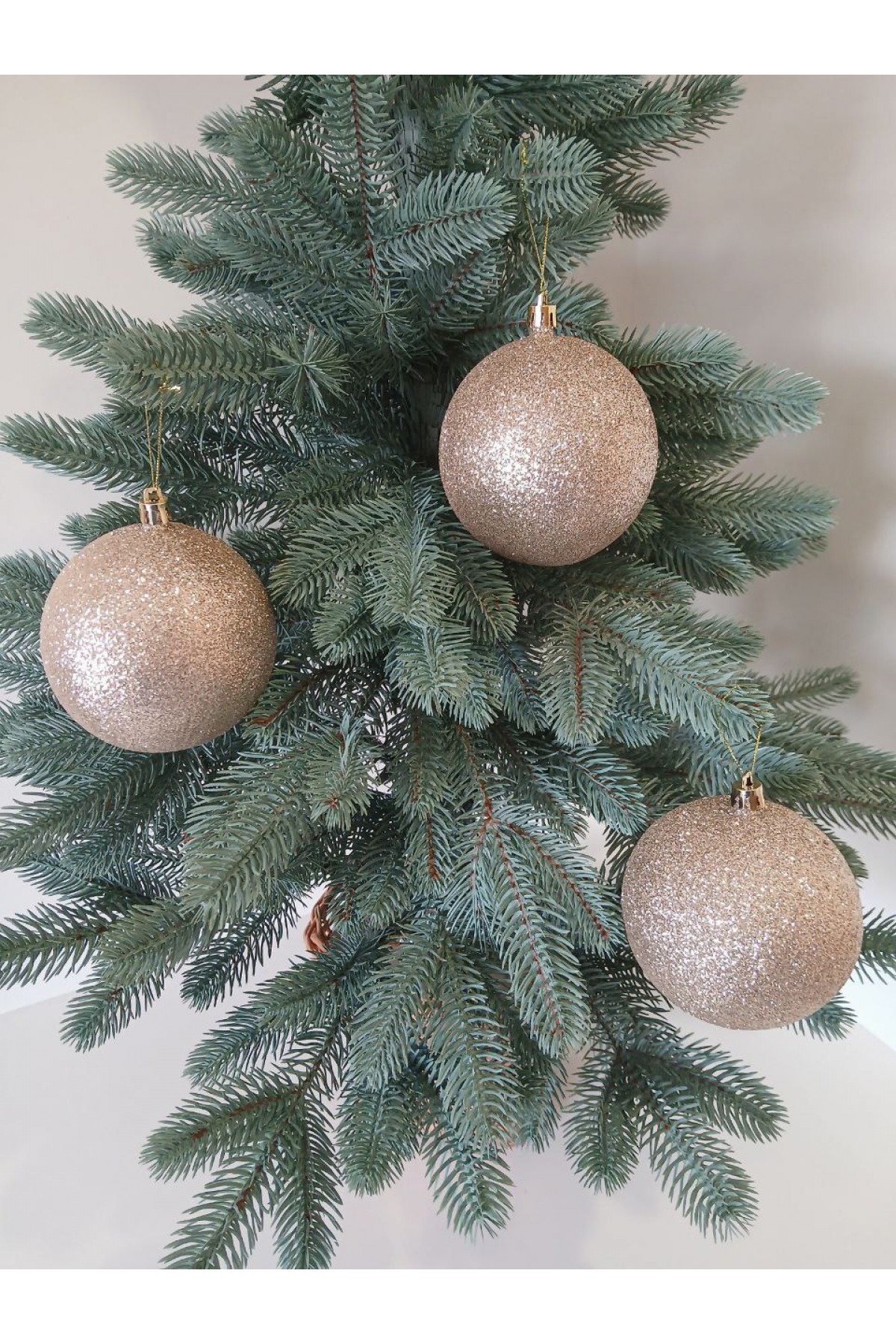 Набір ялинкових куль 10 см підійде для прикраси зелених, блакитних та засніжених ялинок розміром від 1,5 метра і вище. Кулі бежевого кольору, мають пластикову основу, декоровані глітером.