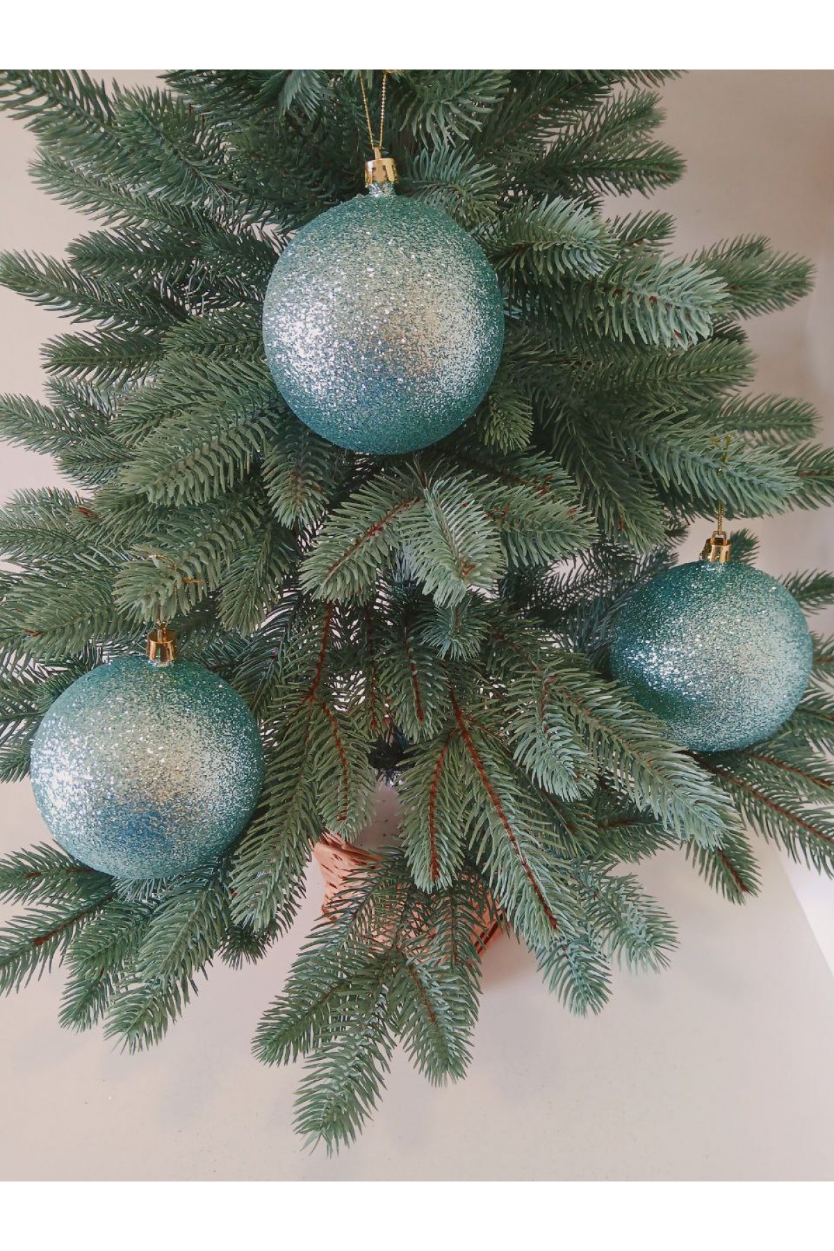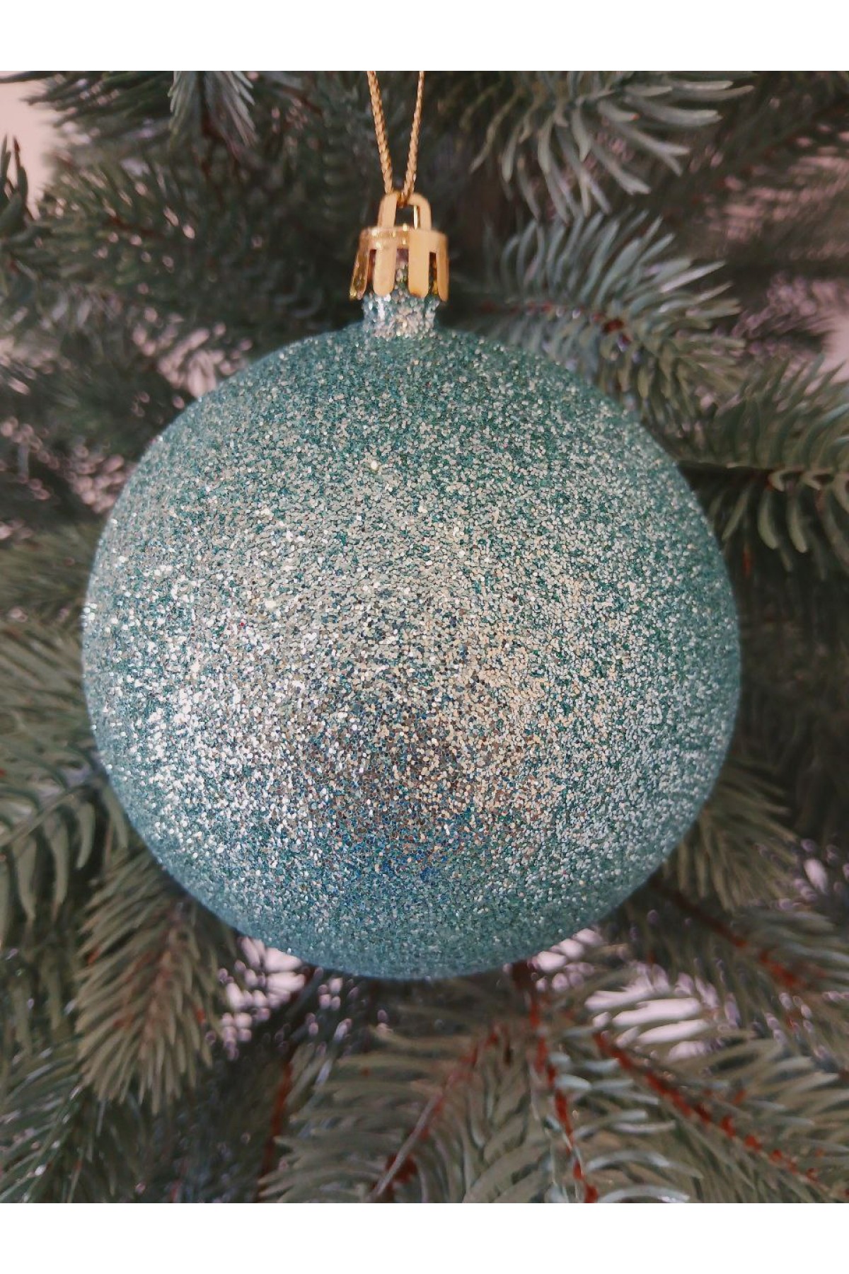 Набір ялинкових куль 10 см підійде для прикраси зелених, блакитних та засніжених ялинок розміром від 1,5 метра і вище. Кулі м'ятного кольору, мають пластикову основу, декоровані глітером.