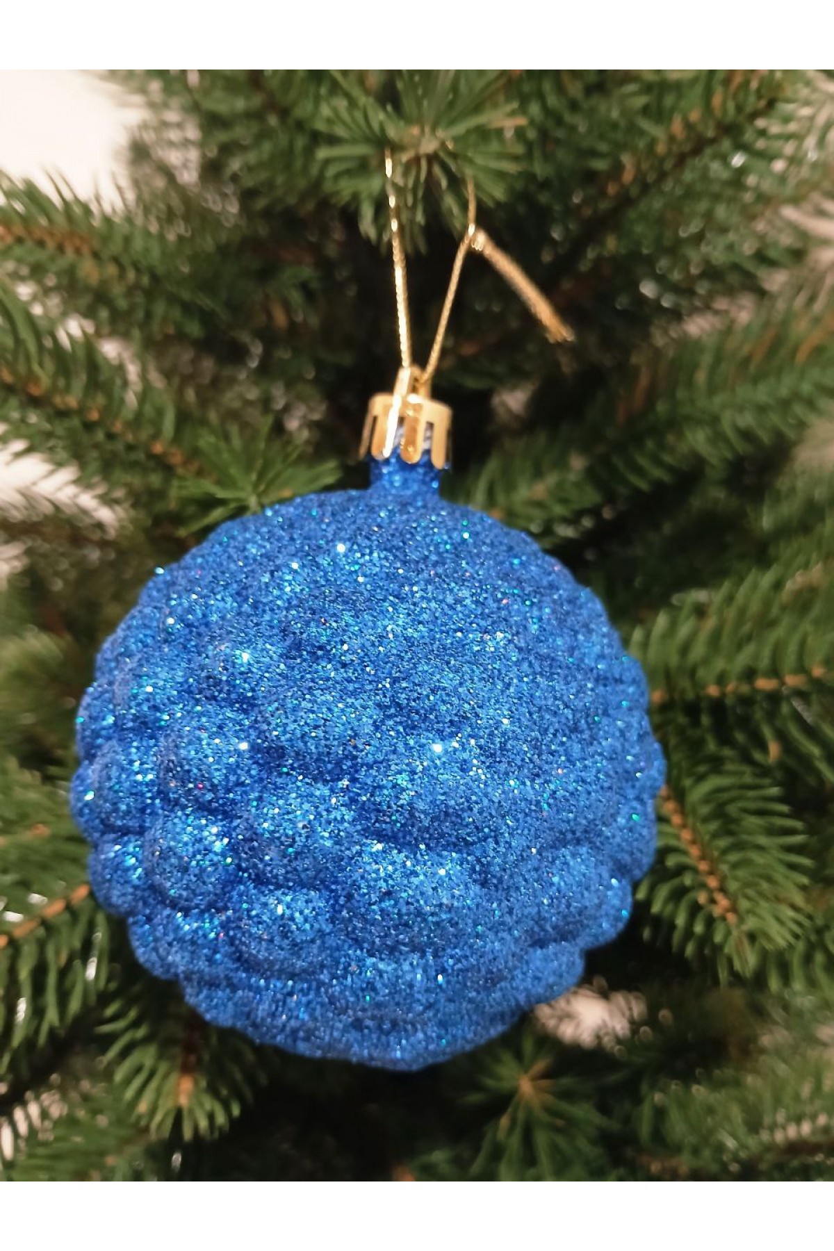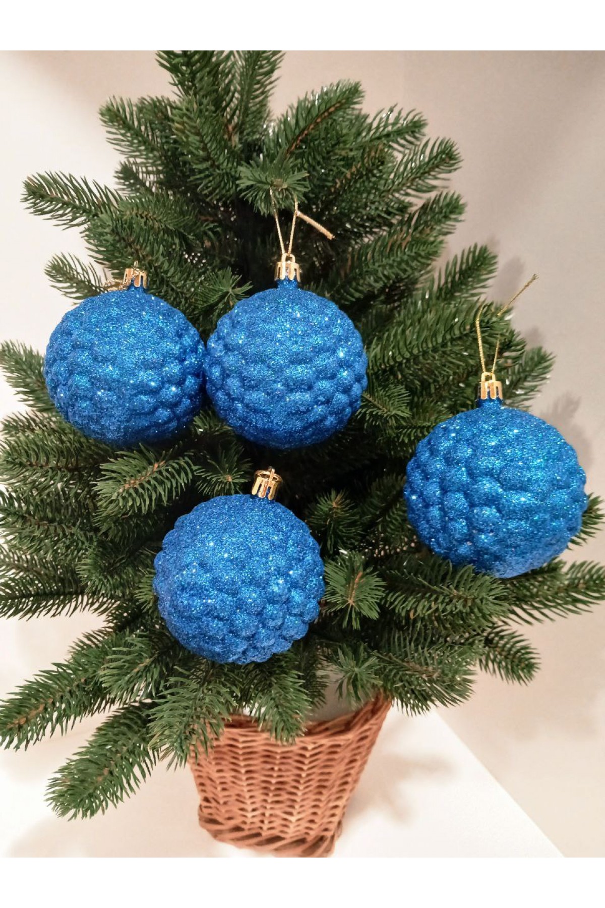 Набір ялинкових куль 8 см підійде для прикраси зелених, блакитних та засніжених ялинок розміром від 0,7 метра і вище. Кулі синього кольору, мають пластикову основу, декоровані глітером.