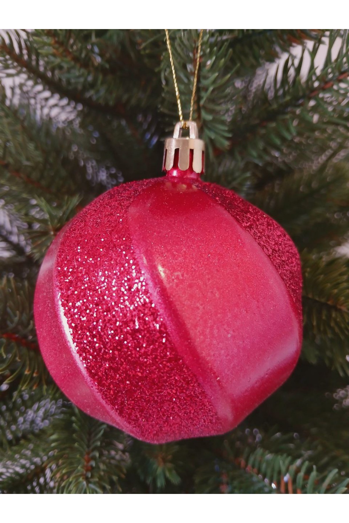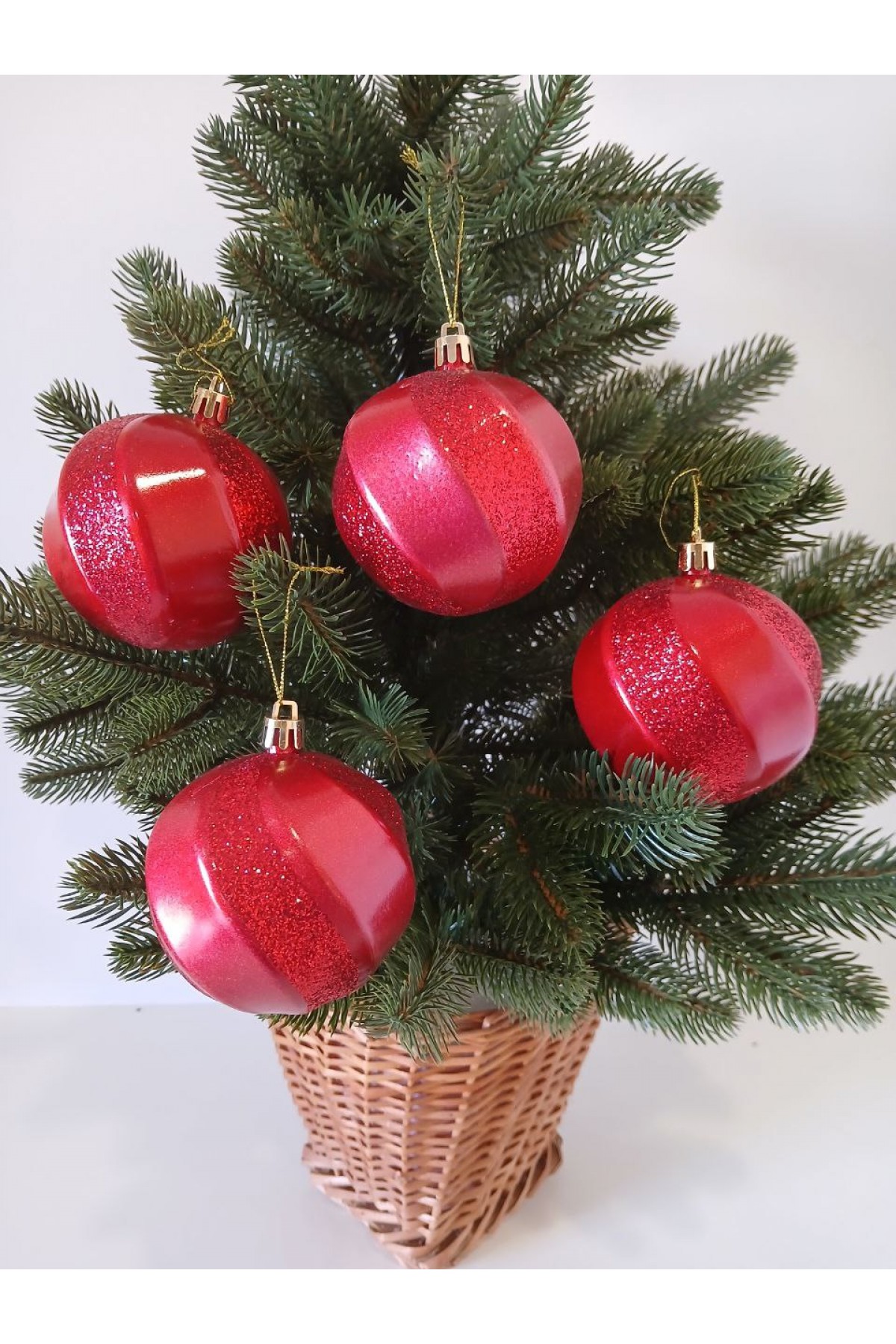 Набір ялинкових куль 8 см підійде для прикраси зелених, блакитних та засніжених ялинок розміром від 0,7 метра і вище. Кулі червоного кольору, мають пластикову основу, декоровані глітером.