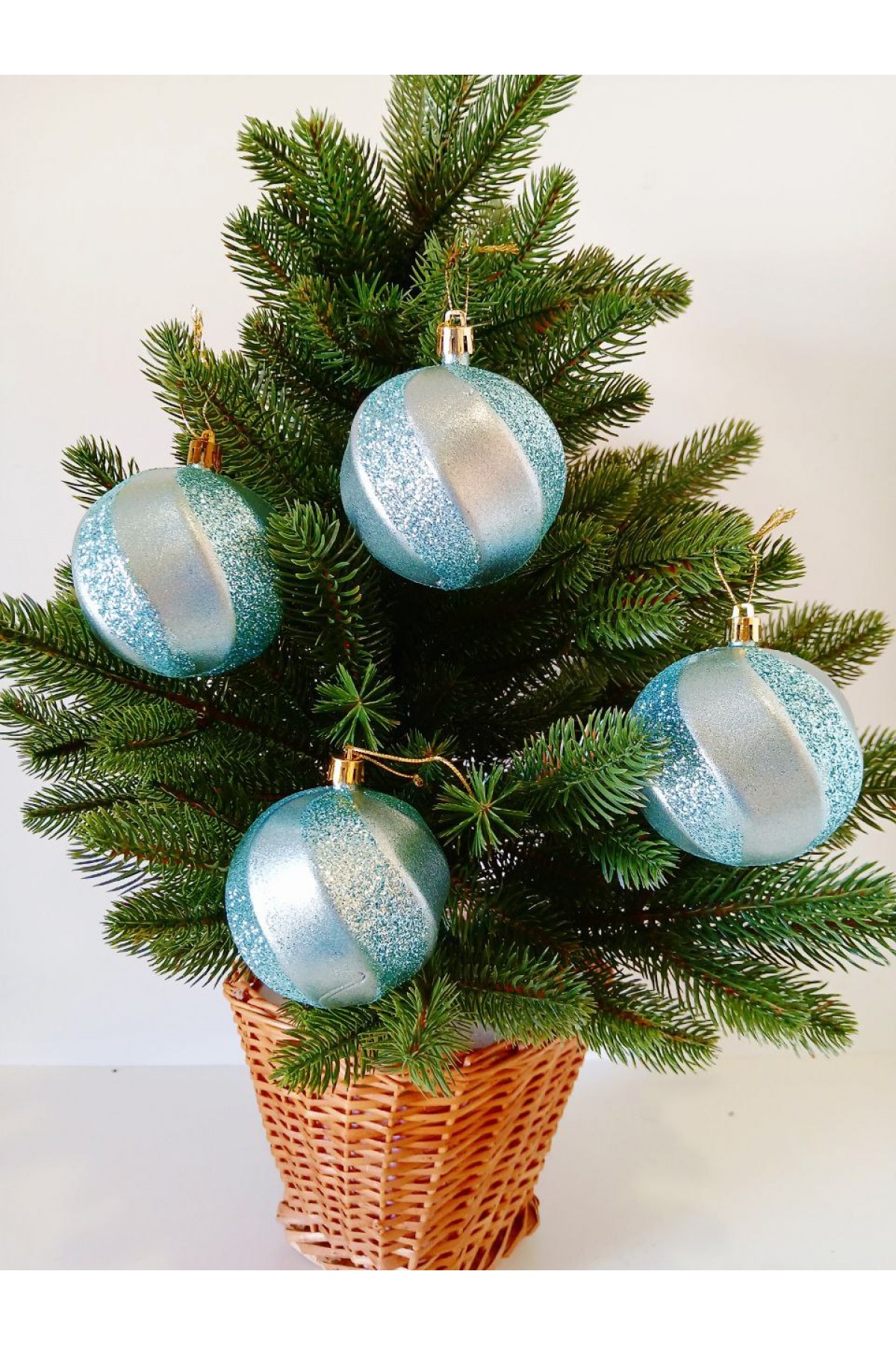 Набір ялинкових куль 8 см підійде для прикраси зелених, блакитних та засніжених ялинок розміром від 0,7 метра і вище. Кулі м'ятного кольору мають пластикову основу, декоровані глітером.