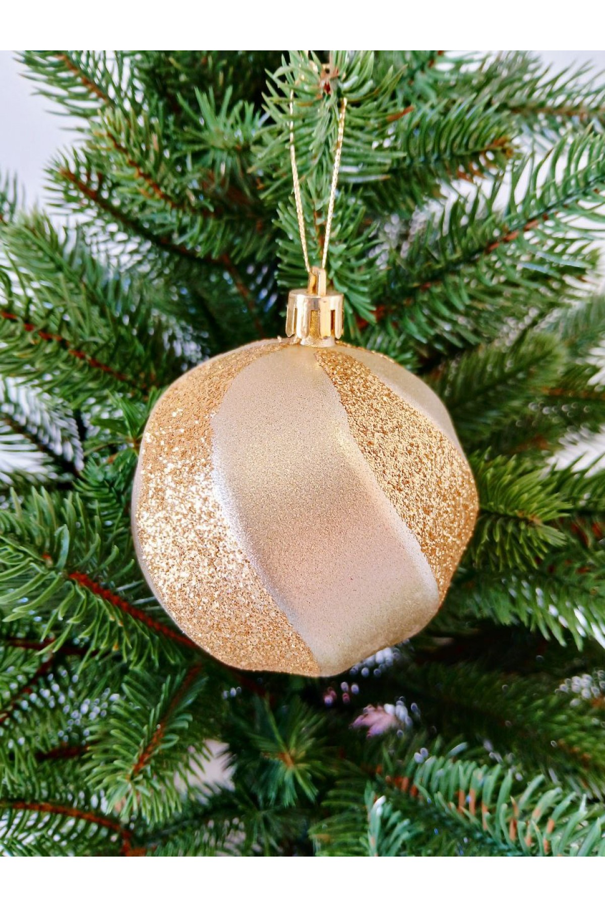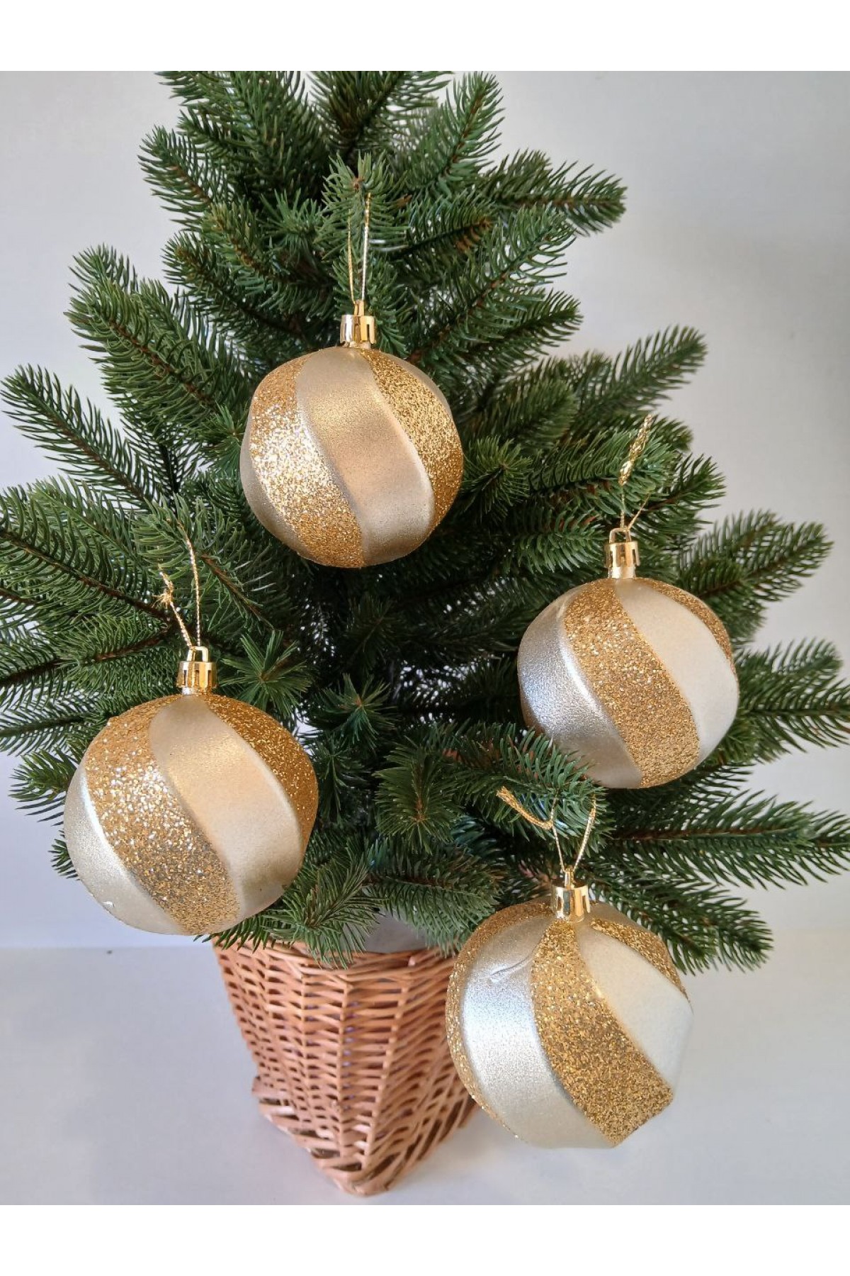 Набір ялинкових куль 8 см підійде для прикраси зелених, блакитних та засніжених ялинок розміром від 0,7 метра і вище. Кулі золотистого кольору мають пластикову основу, декоровані глітером.