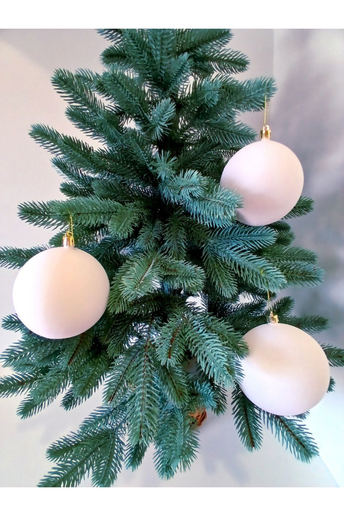 Набір ялинкових куль 10 см підійде для прикраси зелених, блакитних та засніжених ялинок розміром від 1,5 метра і вище. Кулі білого кольору, мають пластикову основу та оксамитову поверхню.
