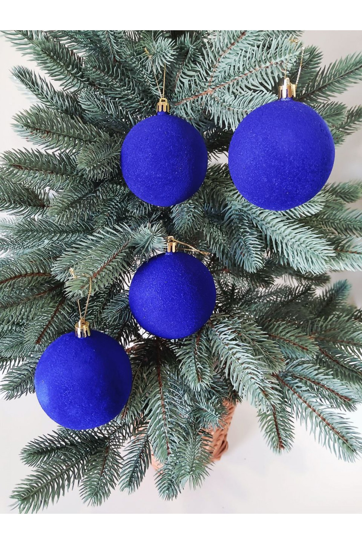 Набір ялинкових куль 8 см підійде для прикраси зелених, блакитних та засніжених ялинок розміром від 0,7 метра і вище. Кулі синього кольору, мають пластикову основу та оксамитову поверхню.