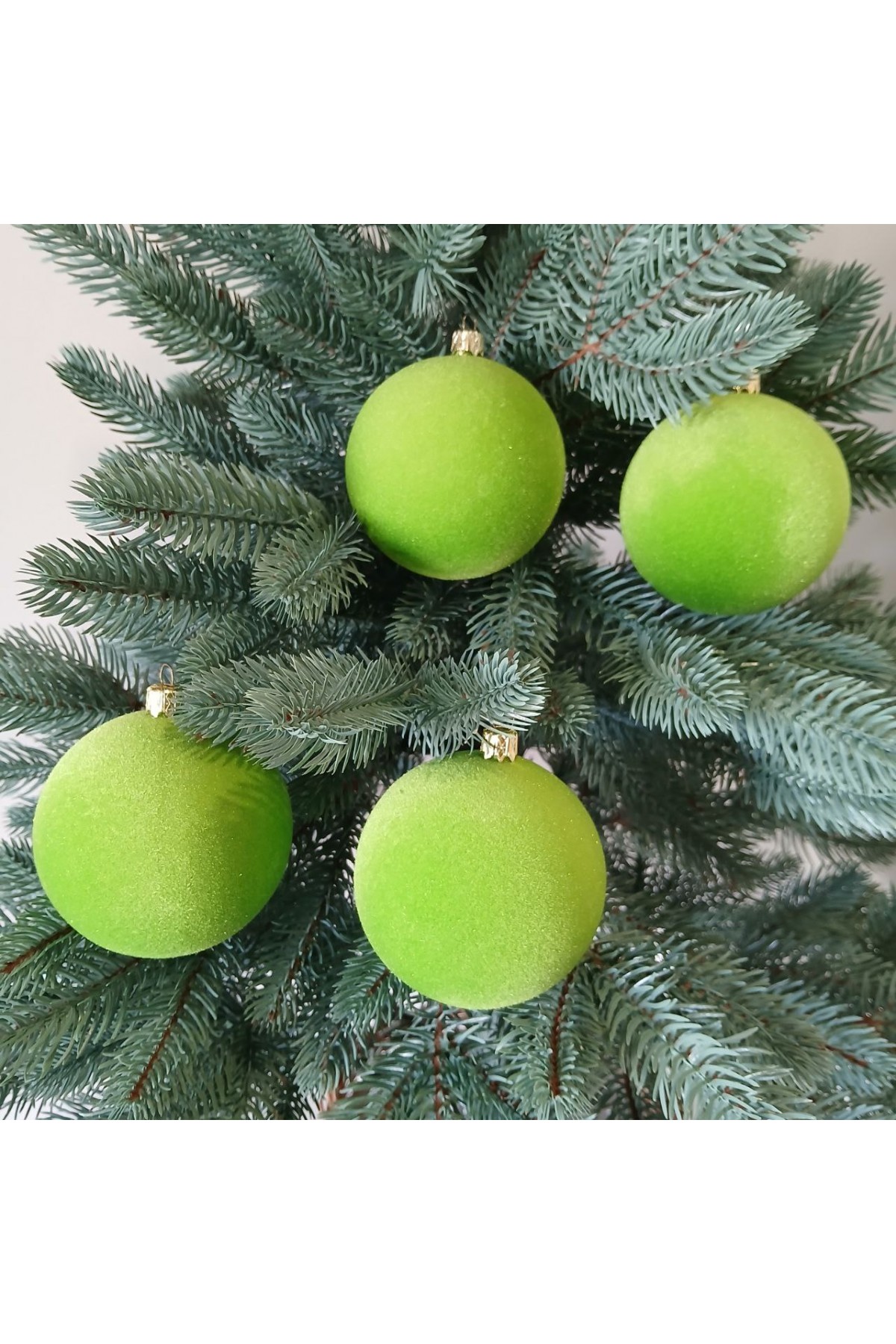 Набір ялинкових куль 8 см підійде для прикраси зелених, блакитних та засніжених ялинок розміром від 0,7 метра і вище. Кулі зеленого кольору, мають пластикову основу та оксамитову поверхню.