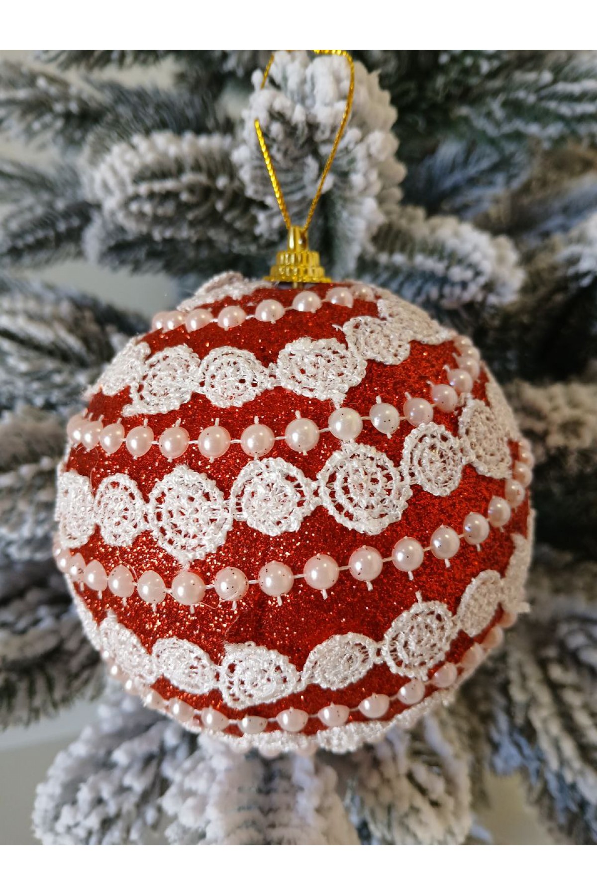 Набір ялинкових куль, червоні, декор із тасьми, пластик, 2 шт, D 10 см (SH212)