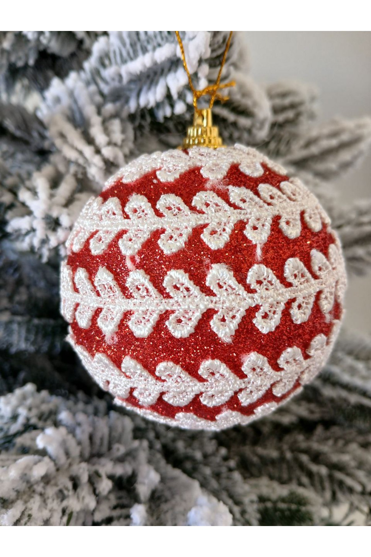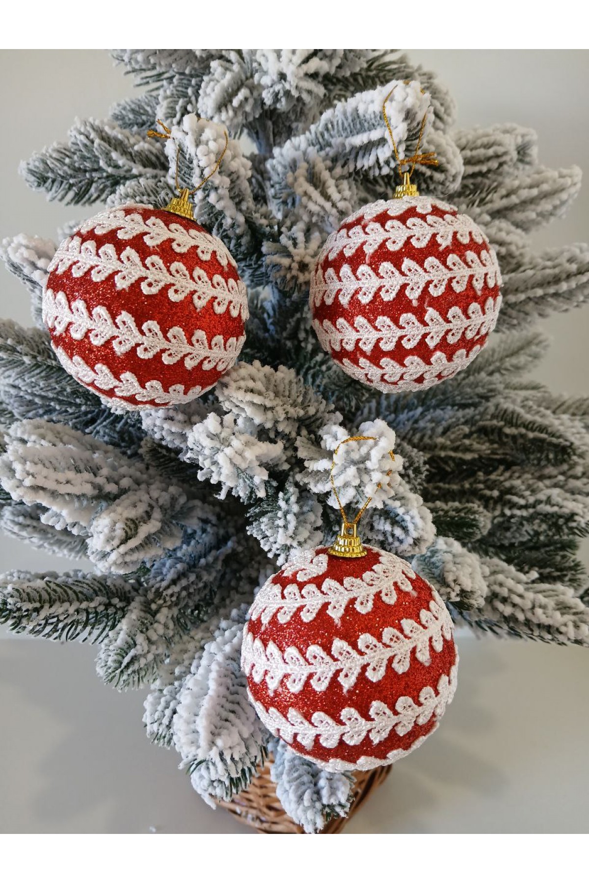 Набір ялинкових куль, червоні, декор із тасьми, пластик, 3 шт, D 8 см (SH221)