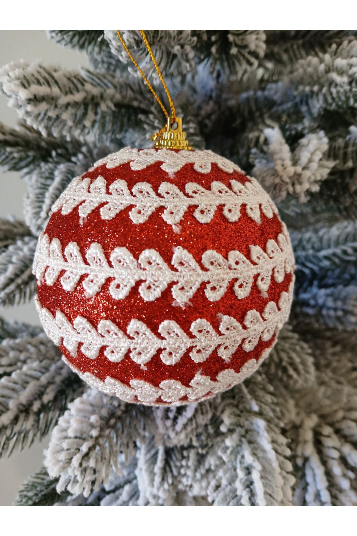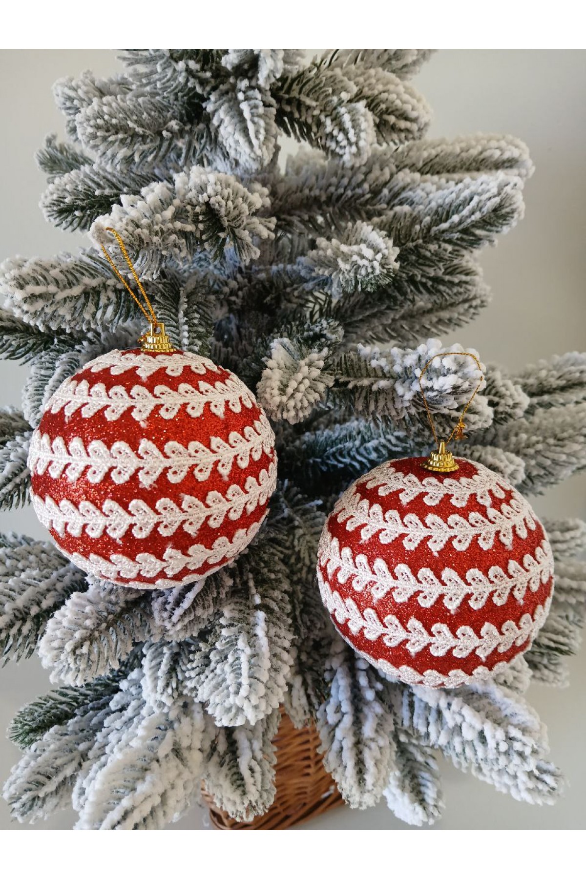 Набір ялинкових куль, червоні, декор із тасьми, пластик, 2 шт, D 10 см (SH222)