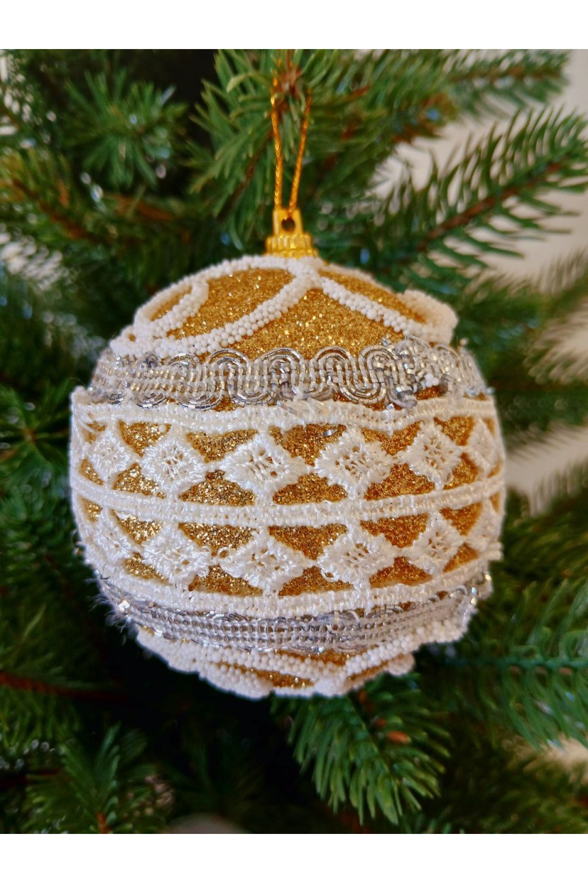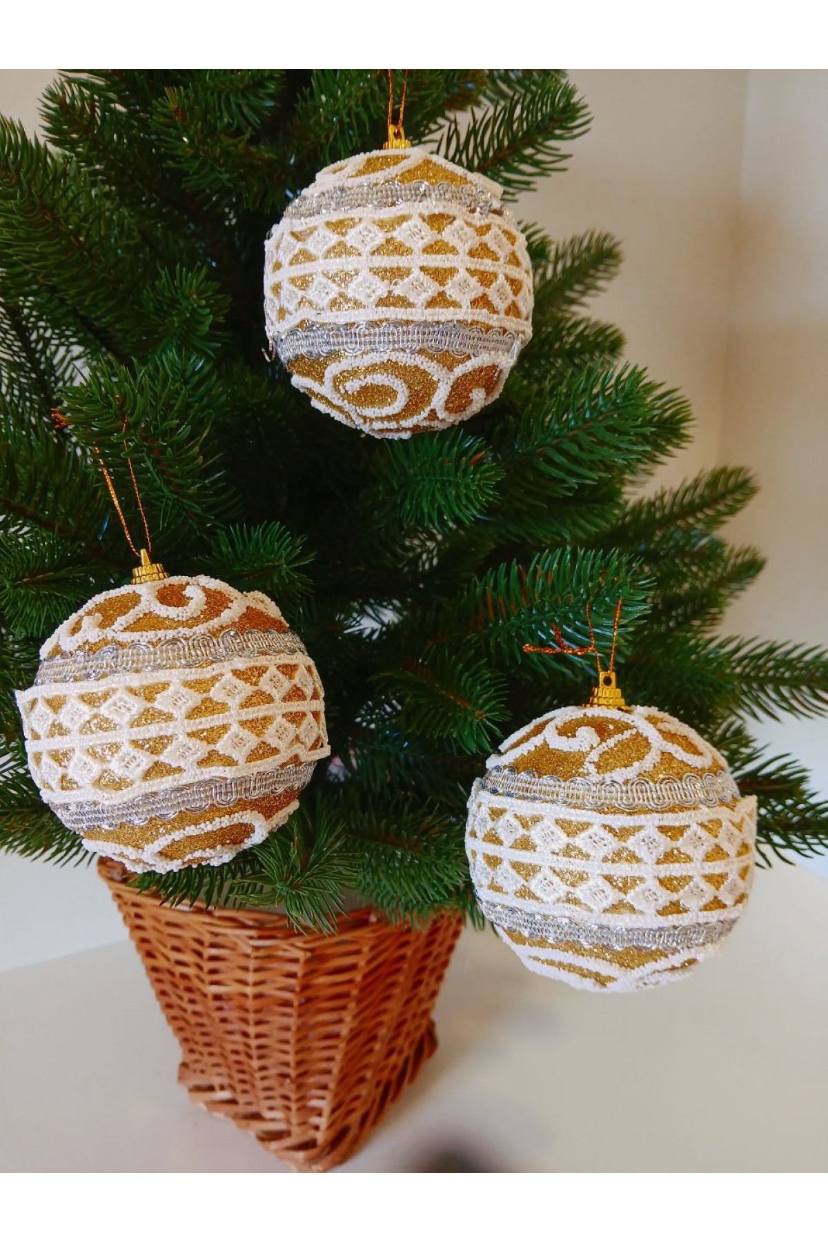 Набір ялинкових куль, золоті, декор із тасьми, пластик, 3 шт, D 8 см (SH227)