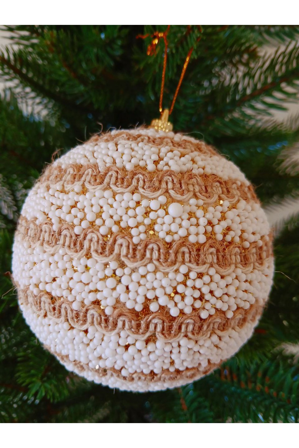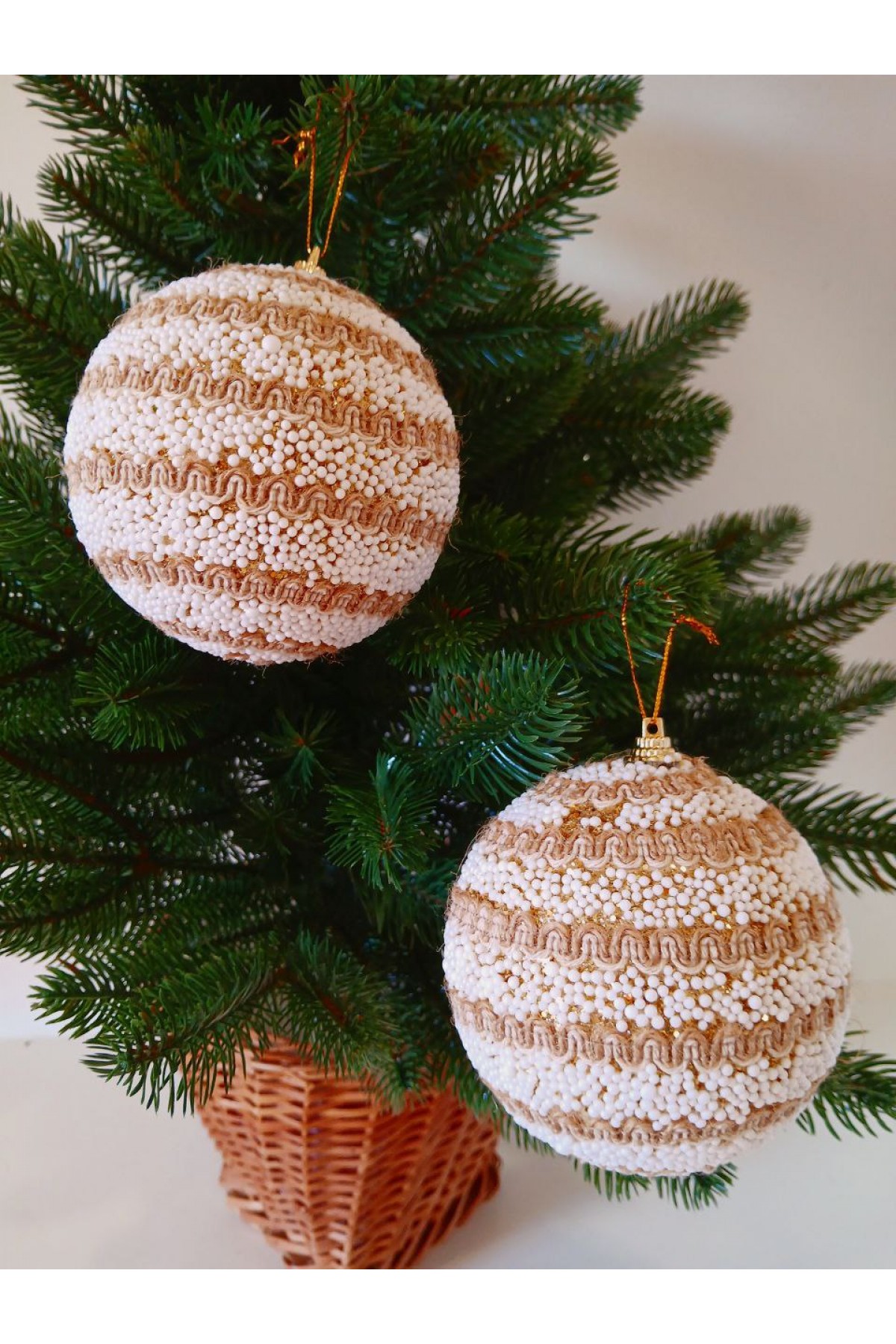 Набір ялинкових куль, засніжені, декор із тасьми, пластик, 2 шт, D 10 см (SH232)