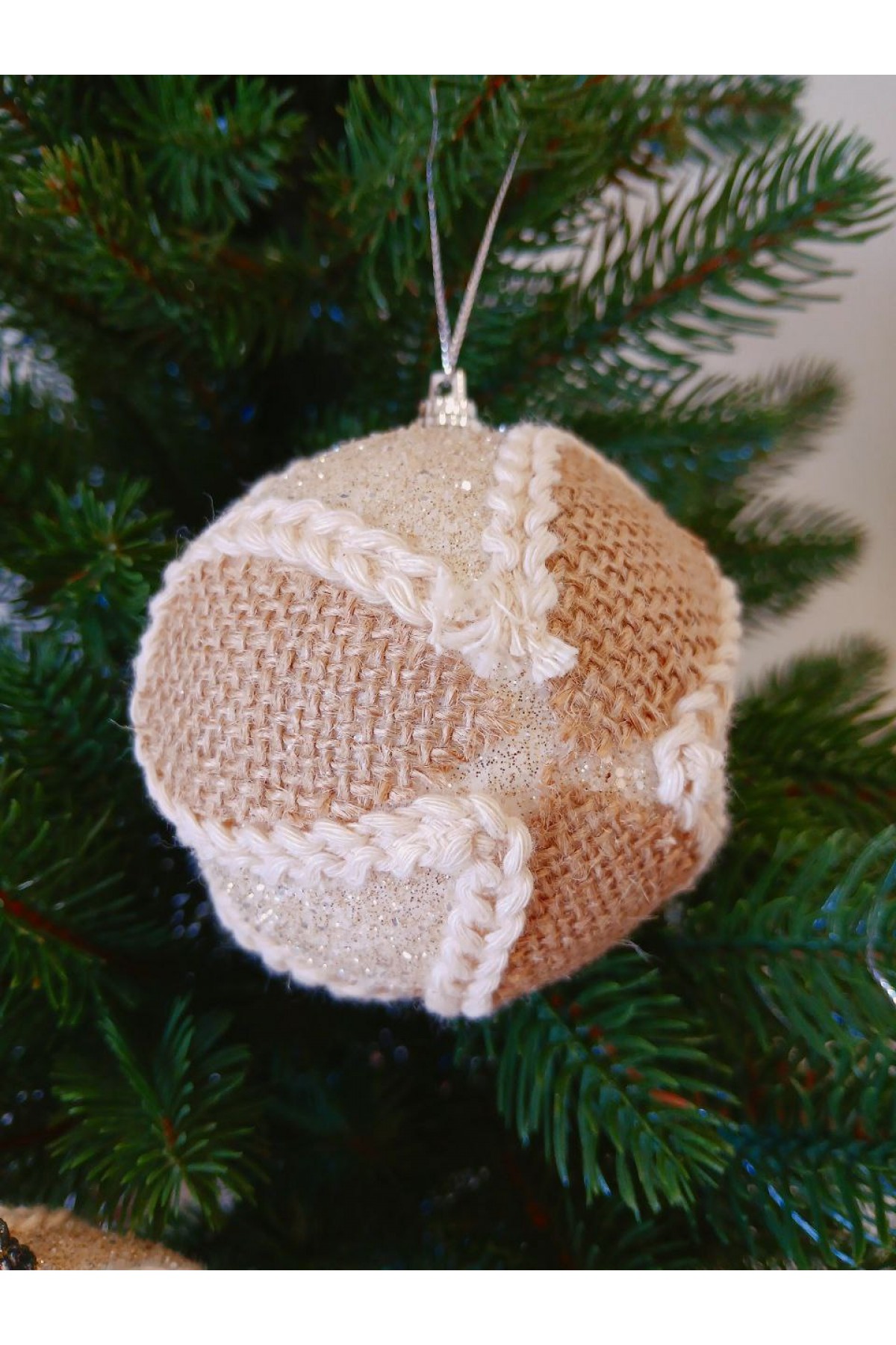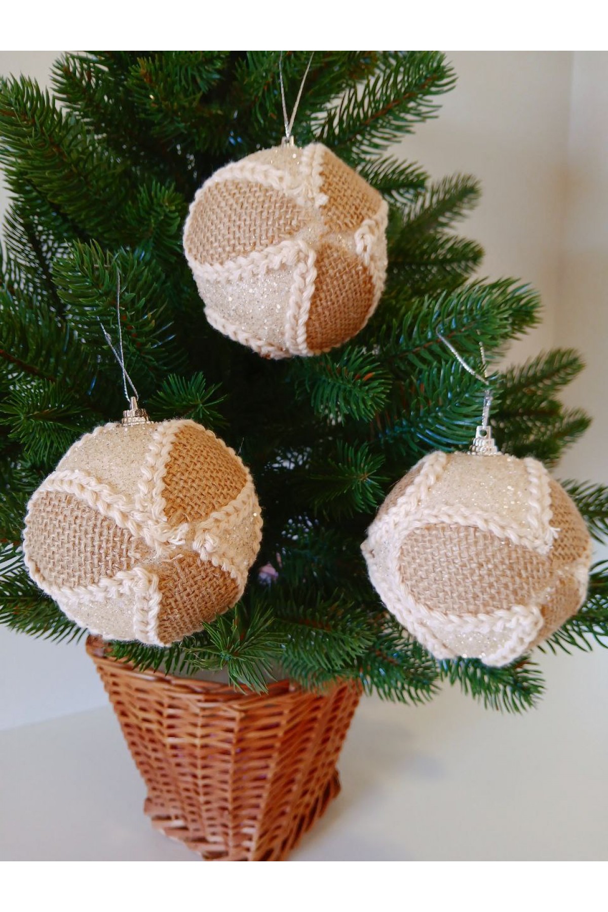 Набір ялинкових куль 8 см підійде для прикраси зелених, блакитних та засніжених ялинок розміром від 0,7 метра і вище. Кулі бежевого кольору мають пластикову основу, декоровані текстилем у стилі хенд мейд.