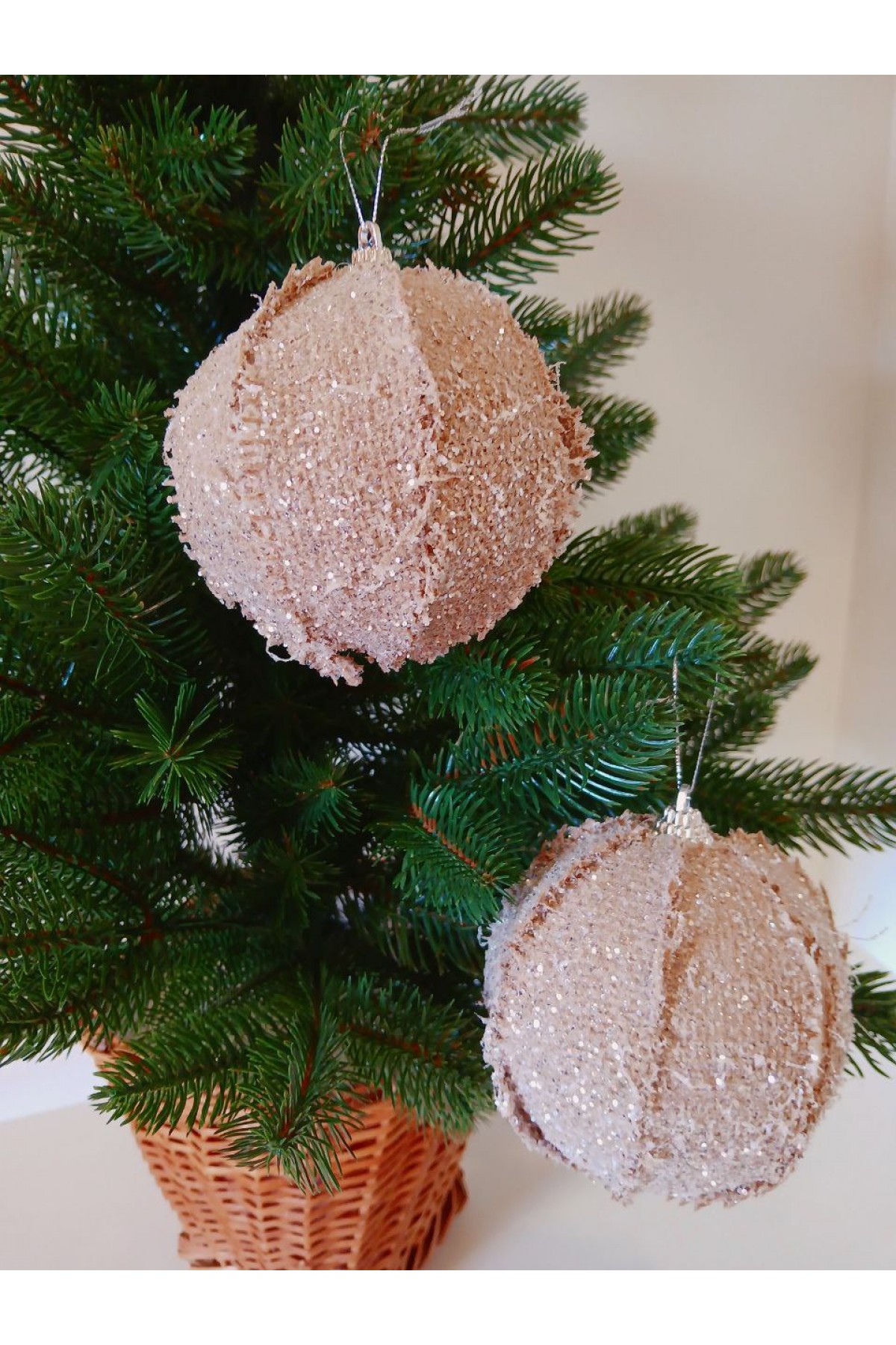 Набір ялинкових куль у мішковині, бежеві, пластик, 2 шт, D 10 см (SH252)