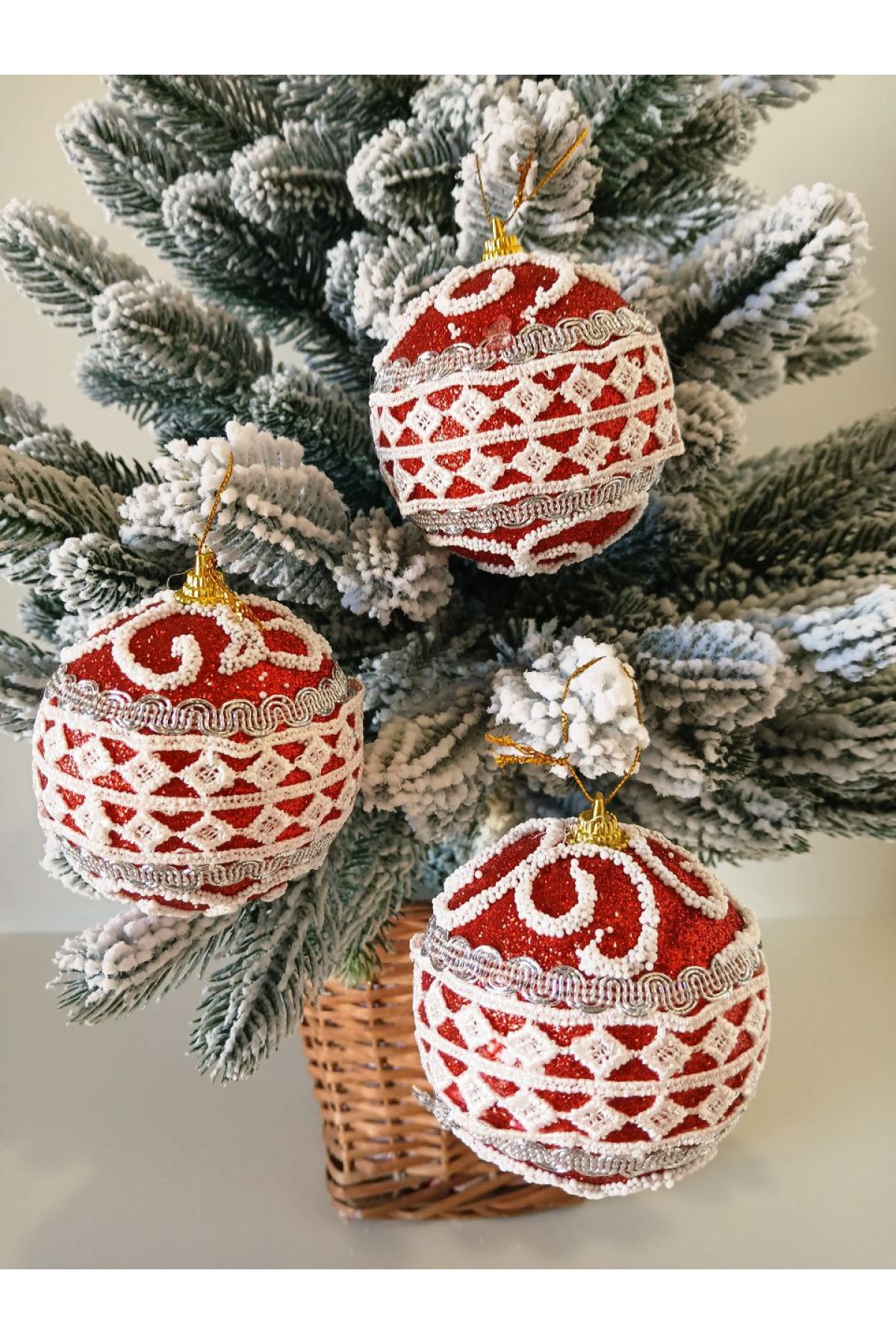 Набір ялинкових куль 8 см підійде для прикраси зелених, блакитних та засніжених ялинок розміром від 0,7 метра і вище. Кулі червоного кольору мають пластикову основу, декоровані орнаментом і блиском.