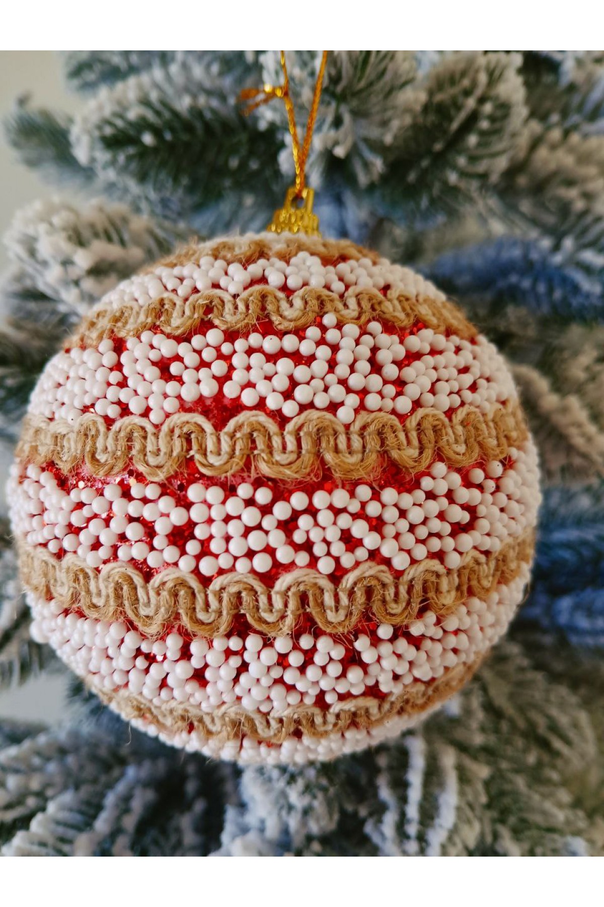 Набір ялинкових куль 10 см підійде для прикраси зелених, блакитних та засніжених ялинок розміром від 1,8 метра і вище. Кулі червоного кольору, мають пластикову основу, декоровані сніговою крихтою, золотою тасьмою та блиском.