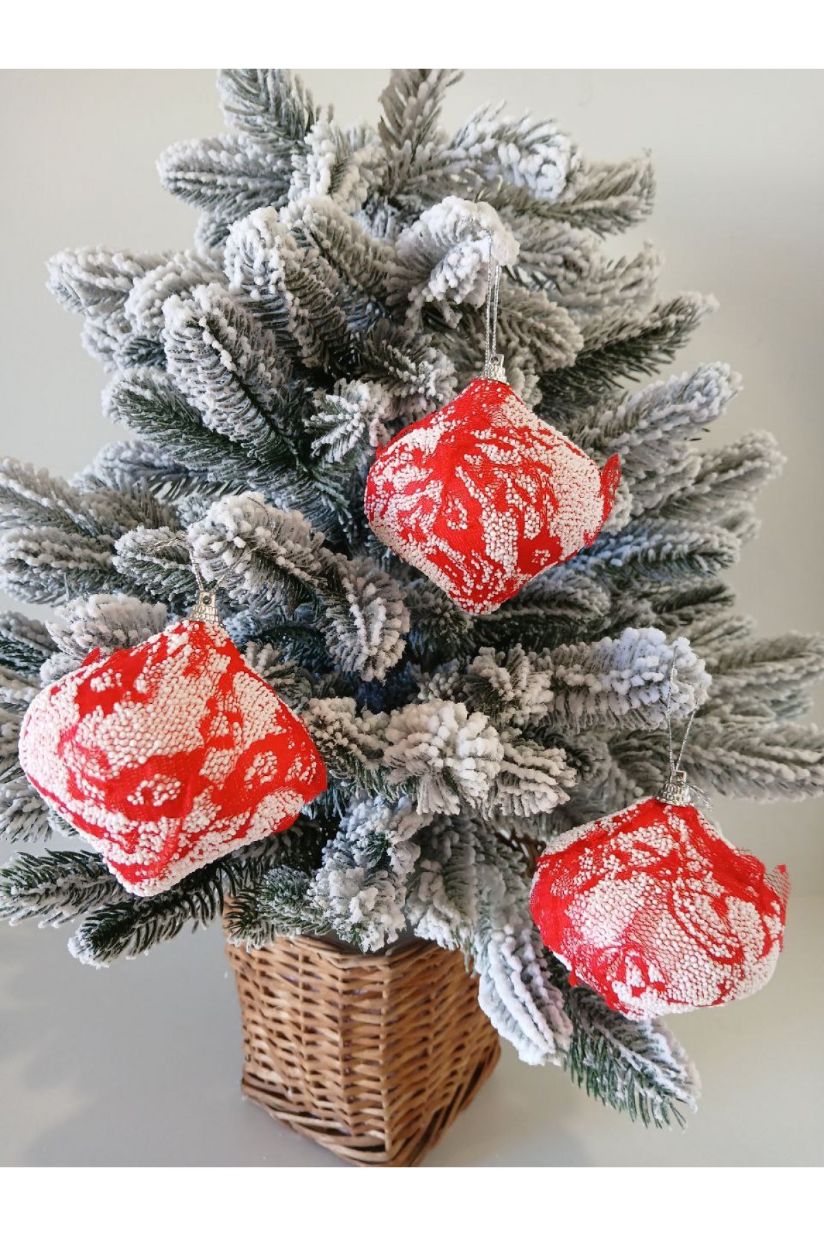 Набір ялинкових куль 8 см підійде для прикраси зелених, блакитних та засніжених ялинок розміром від 0,7 метра і вище. Кулі червоно-білі, мають пластикову основу, декоровані текстилем.