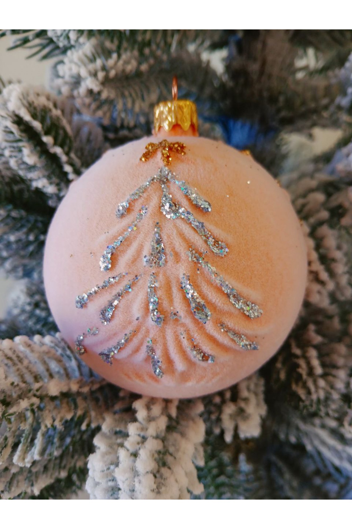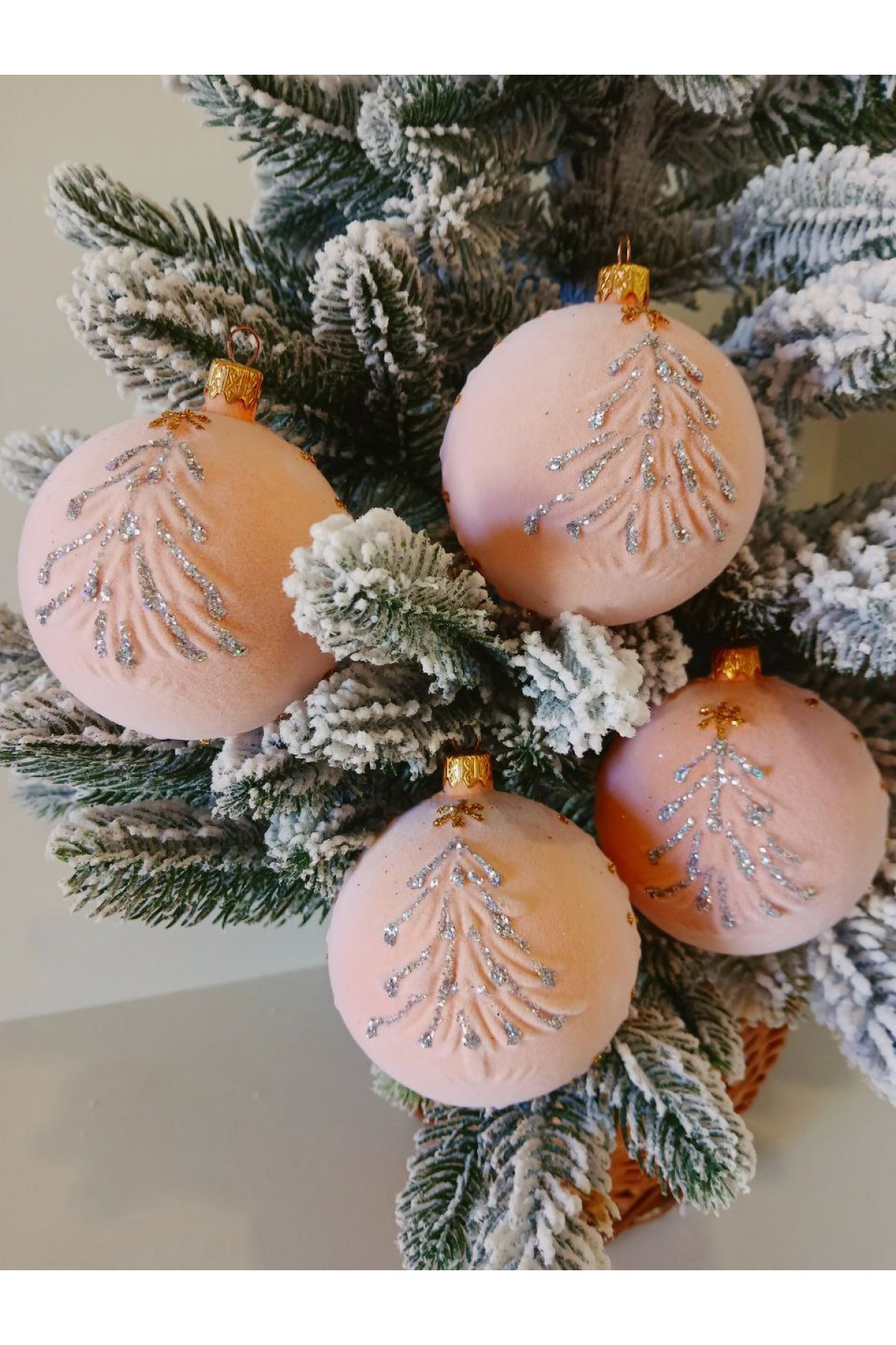 Набір ялинкових куль 8 см підійде для прикраси зелених, блакитних та засніжених ялинок розміром від 0,7 метра і вище. Кулі персикового кольору, мають пластикову основу, оксамитову поверхню, декоровані візерунком у вигляді ялинки.