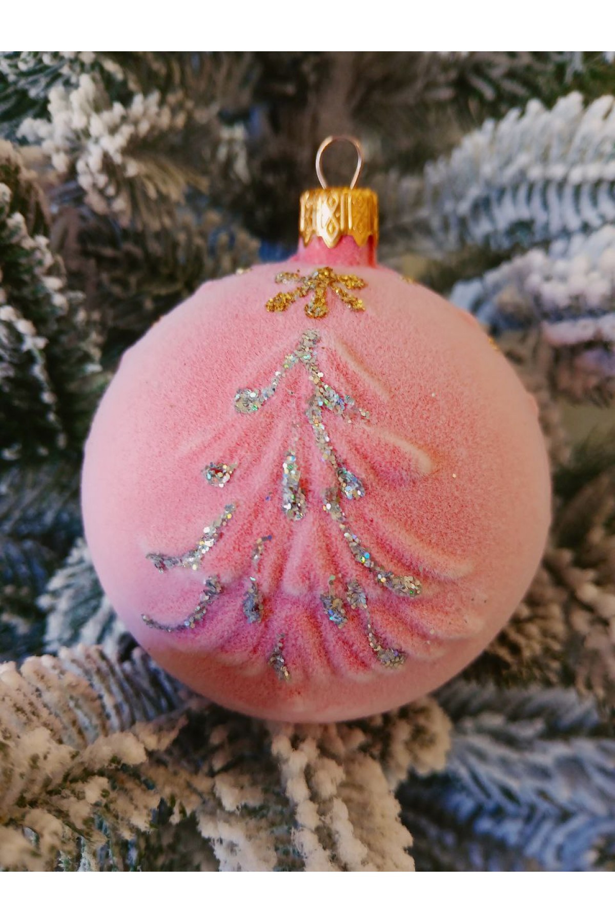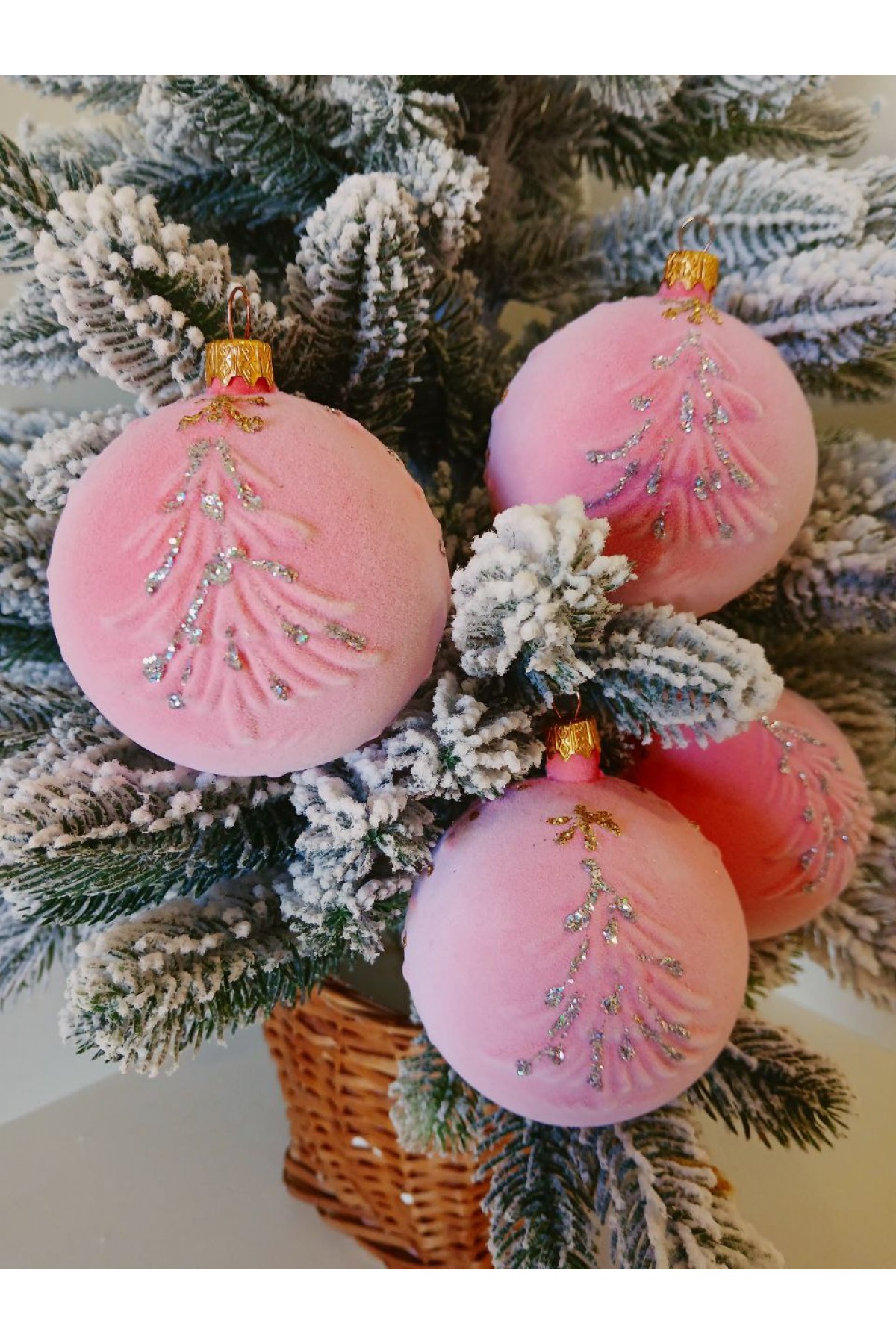 Набір ялинкових куль "Ялинка", оксамит, рожеві, пластик, 4 шт, D 8 см