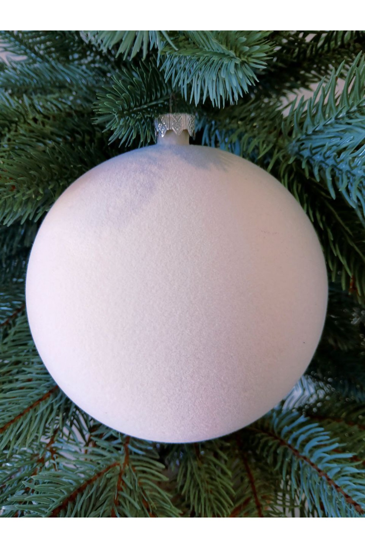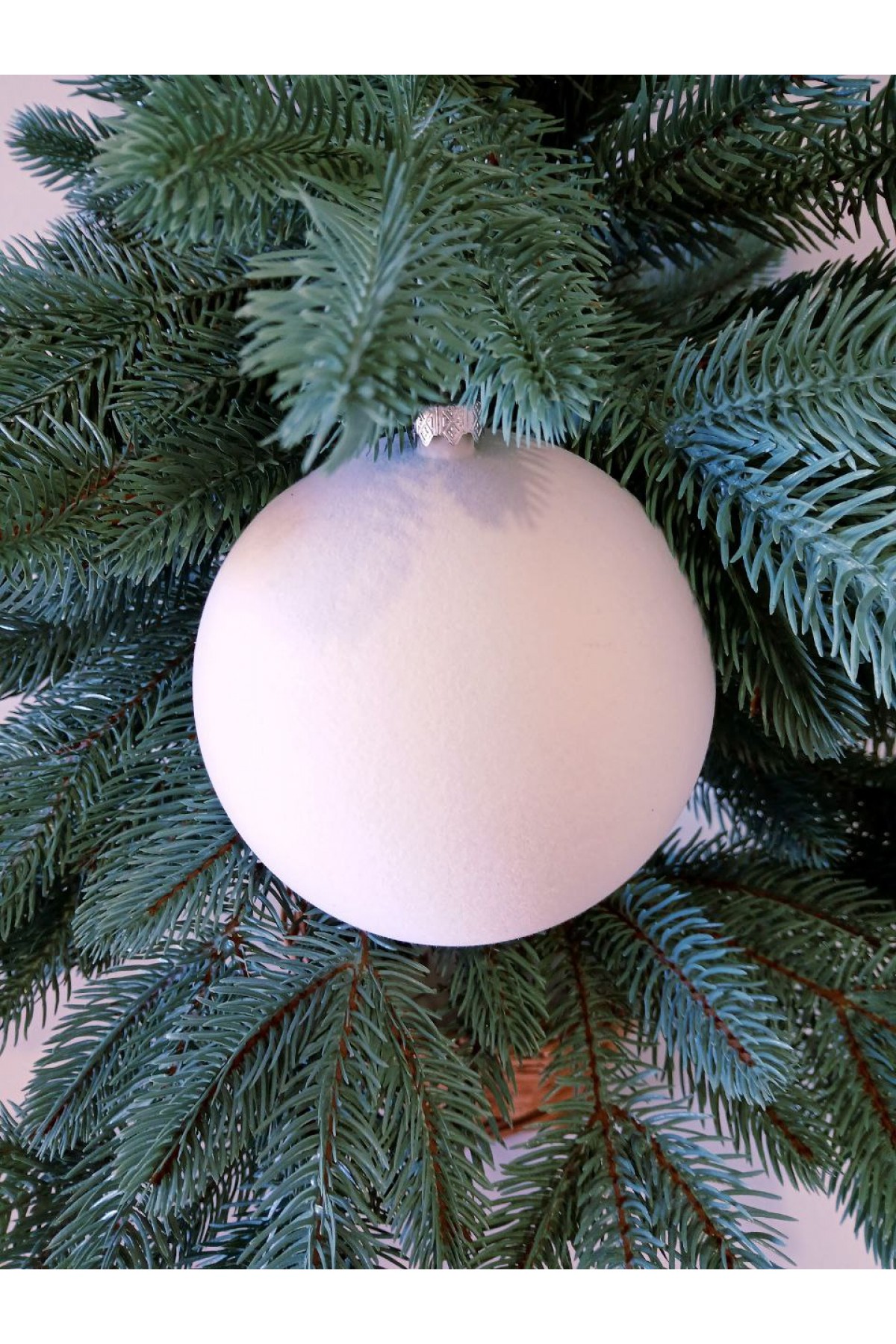Ялинкові кулі 13 см підійдуть для прикраси зелених, блакитних та засніжених ялинок розміром від двох метрів і вище. Кулі білого кольору, мають пластикову основу та оксамитову поверхню.