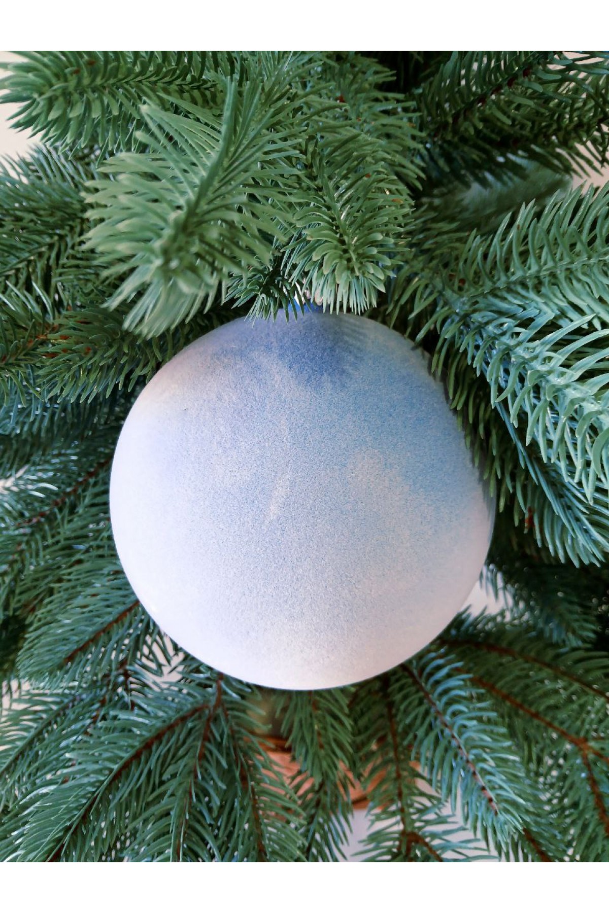 Ялинкові кулі 13 см підійдуть для прикраси зелених, блакитних та засніжених ялинок розміром від двох метрів і вище. Кулі блакитного кольору, мають пластикову основу та оксамитову поверхню.