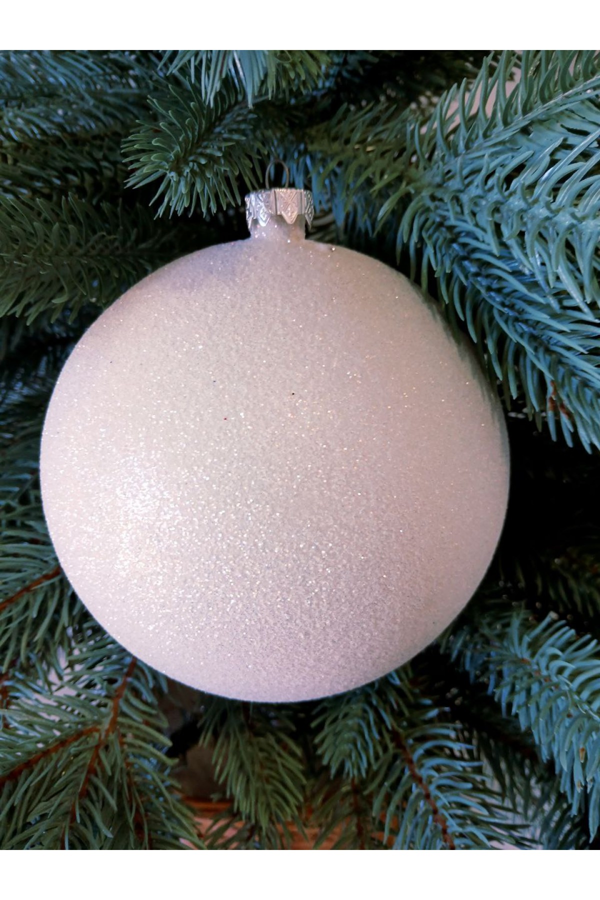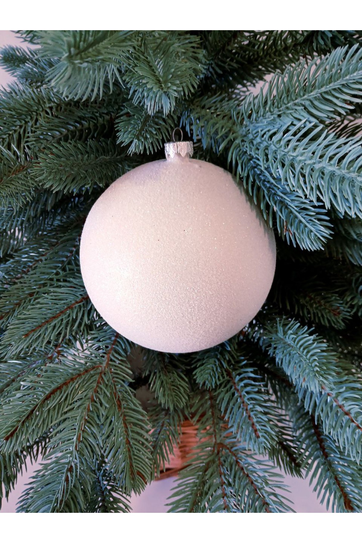 Ялинкові кулі 13 см підійдуть для прикраси зелених, блакитних та засніжених ялинок розміром від двох метрів і вище. Кулі білого кольору, мають пластикову основу, декоровані глітером.